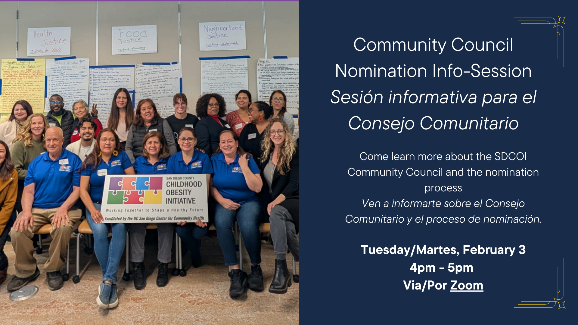 The COI Community Council is recruiting new members to support community-driven decision-making and ensure lived experience is reflected in collaborative efforts. Community partners are encouraged to help identify and nominate strong community leaders who would be a good fit for the Council. Individuals may also self-nominate. Nominations are due by February 20th!
