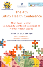 Latinx Health Conference: Mind Your Health: Community-centered solutions to mental health issues March 19th – 8am to 4pm Iglesia Sagrado Corazón de Jesús 600 S. Conkling St., Baltimore MD 21224