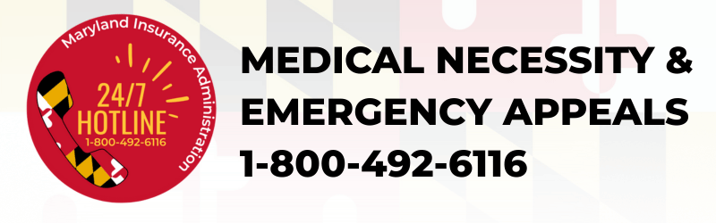 Would you know what to do if you are denied insurance coverage for medically necessary care or emergency appeals? You can reach the Maryland Insurance Administration 24/7, 365 days per year. Call our 24/7 Hotline at 1-800-492-6116 or click here for more information. Also available in Spanish and Korean.