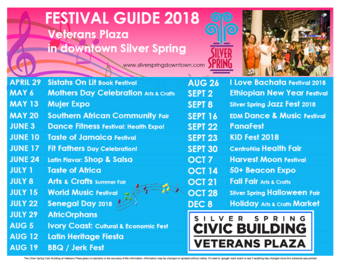 earlier, there are many festivals scheduled at the Silver Spring Civic