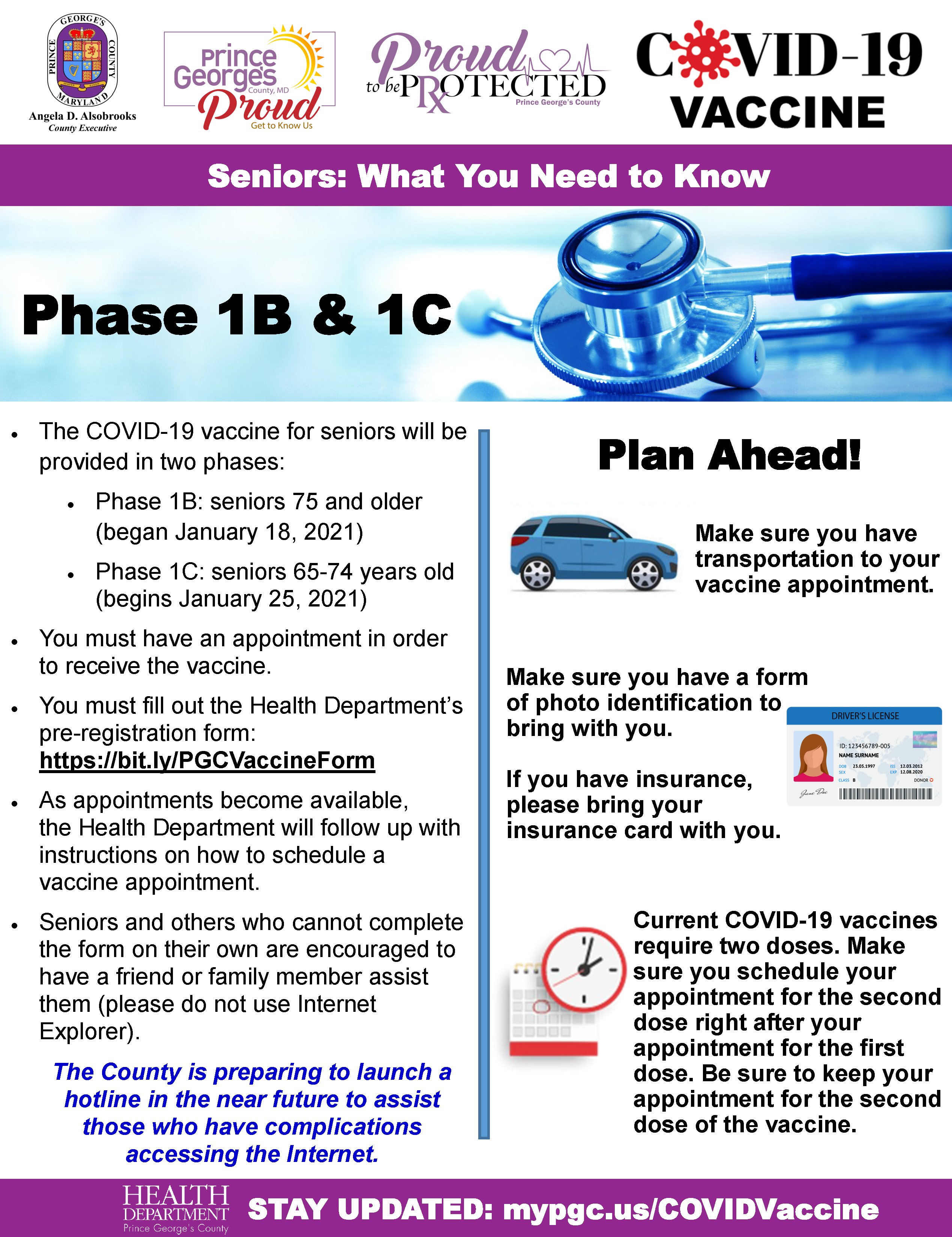 Once residents are eligible to receive the vaccine, residents will be contacted by the Prince George's County Health Department.