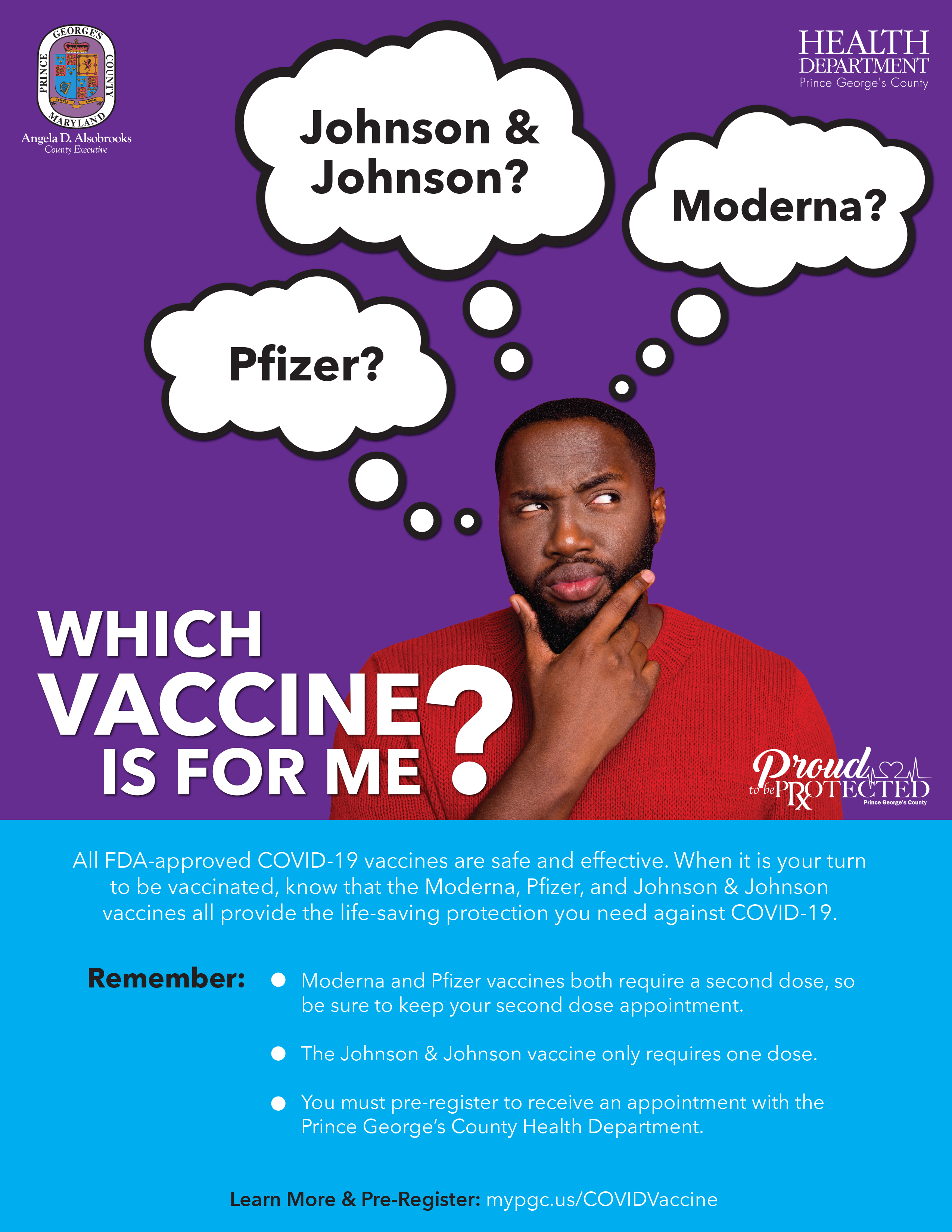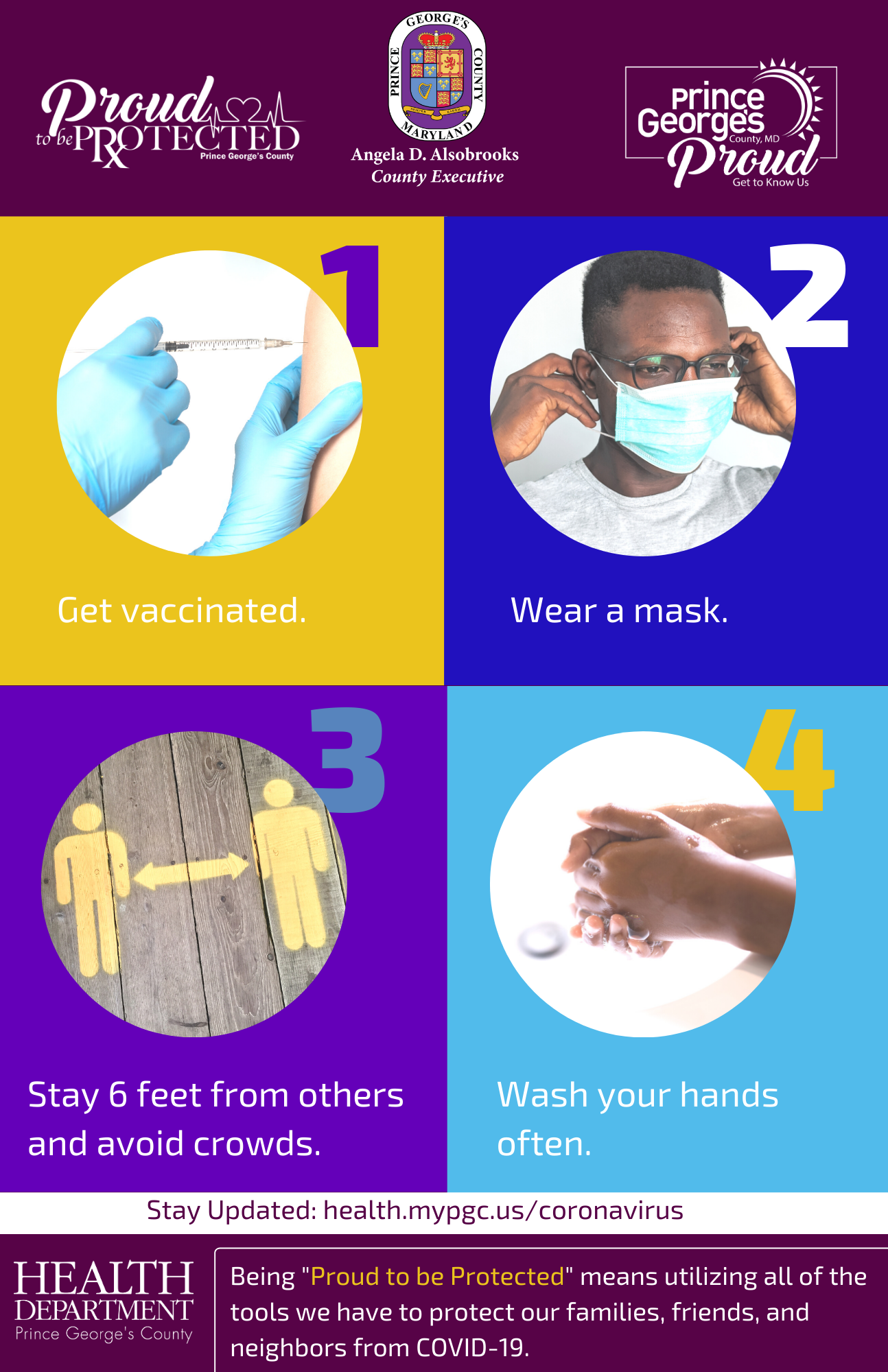 Many of us have been full vaccinated or have received our first dose of the COVID-19, signaling a sense of ease and comfort in knowing that we can truly begin the process of discovering what our new normal will look like; slowly but surely. HOWEVER, the fight is far from over. We must encourage our family, friends and neighbors to get vaccinated. Getting vaccinated against COVID-19 not only protects you, but also your loved ones and our community. Make sure you pre-register with the County Health Department so you can receive your vaccination appointment when it’s your turn: https://covid19vaccination.princegeorgescountymd.gov/
