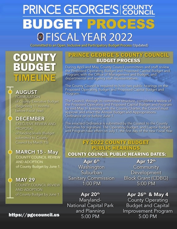 VISIT the Council’s FY 22 Budget Portal for more information about how to participate in the Council’s Budget and Review Process.