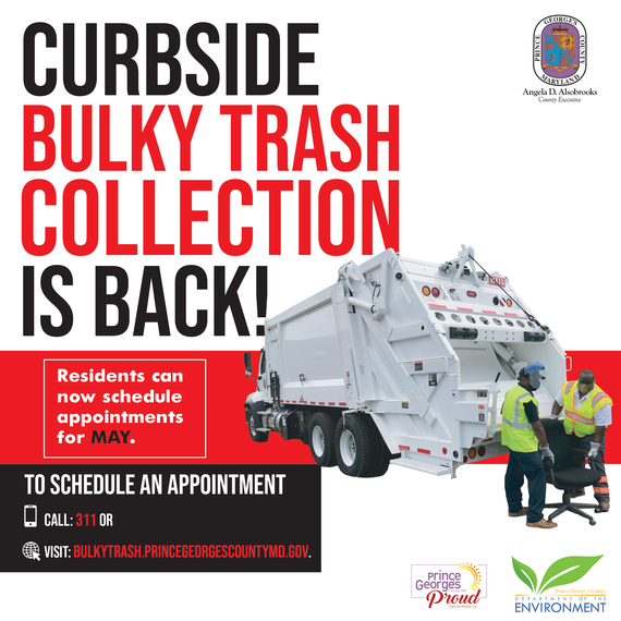 Items that are too big to fit in your trash bin won’t be hauled away in your regular curbside trash collection. Schedule your curbside bulky trash appointment today by calling 311 or visiting: bulkytrash.princegeorgescountymd.gov.