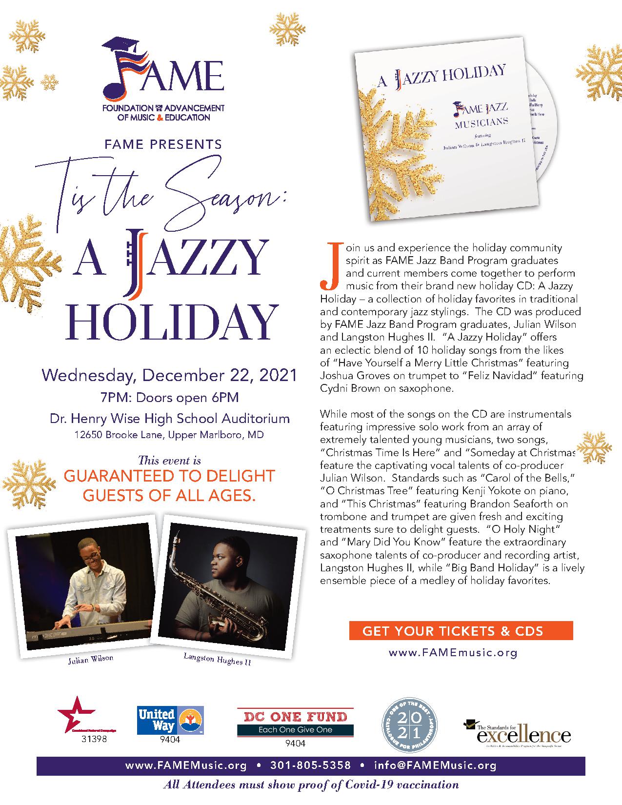 The Foundation for the Advancement of Music & Education (FAME) presents "A Jazzy Holiday" (12/22/2021, 7:00pm)
