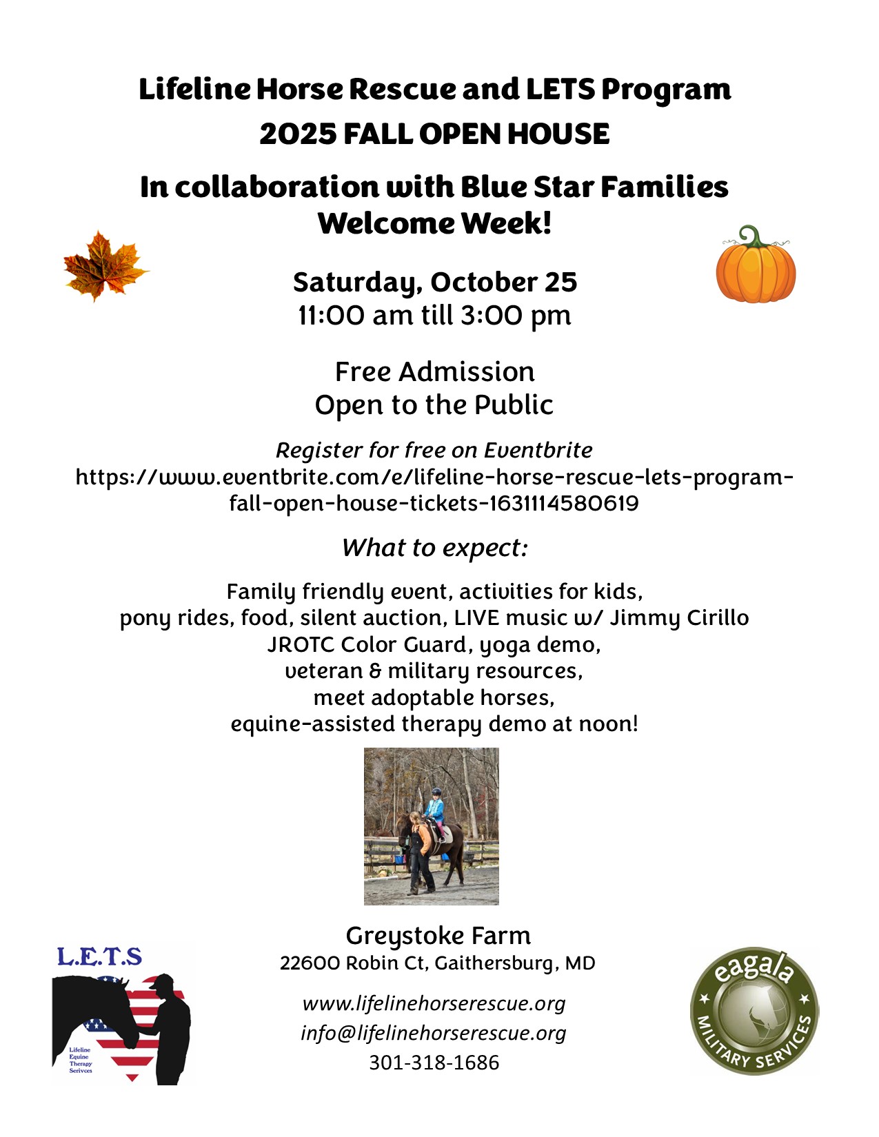 Lifeline Horse Rescue and LETS Program Fall Open House, Gaithersburg, Free Tickets