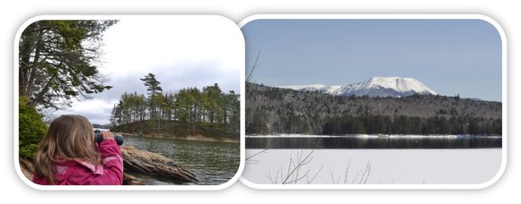 Osprey watching at Wolfe's Neck Woods State Park (Rex Turner photo); Mt Katahdin from the Penobscot River Corridor.
