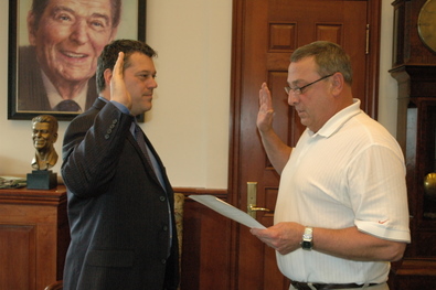 Augusta, Maine – Governor Paul LePage administered the oath today to George Gervais as Commissioner of the Department of Economic and Community Development. Gervais was confirmed by the Maine Senate Friday by a vote of 33-0.