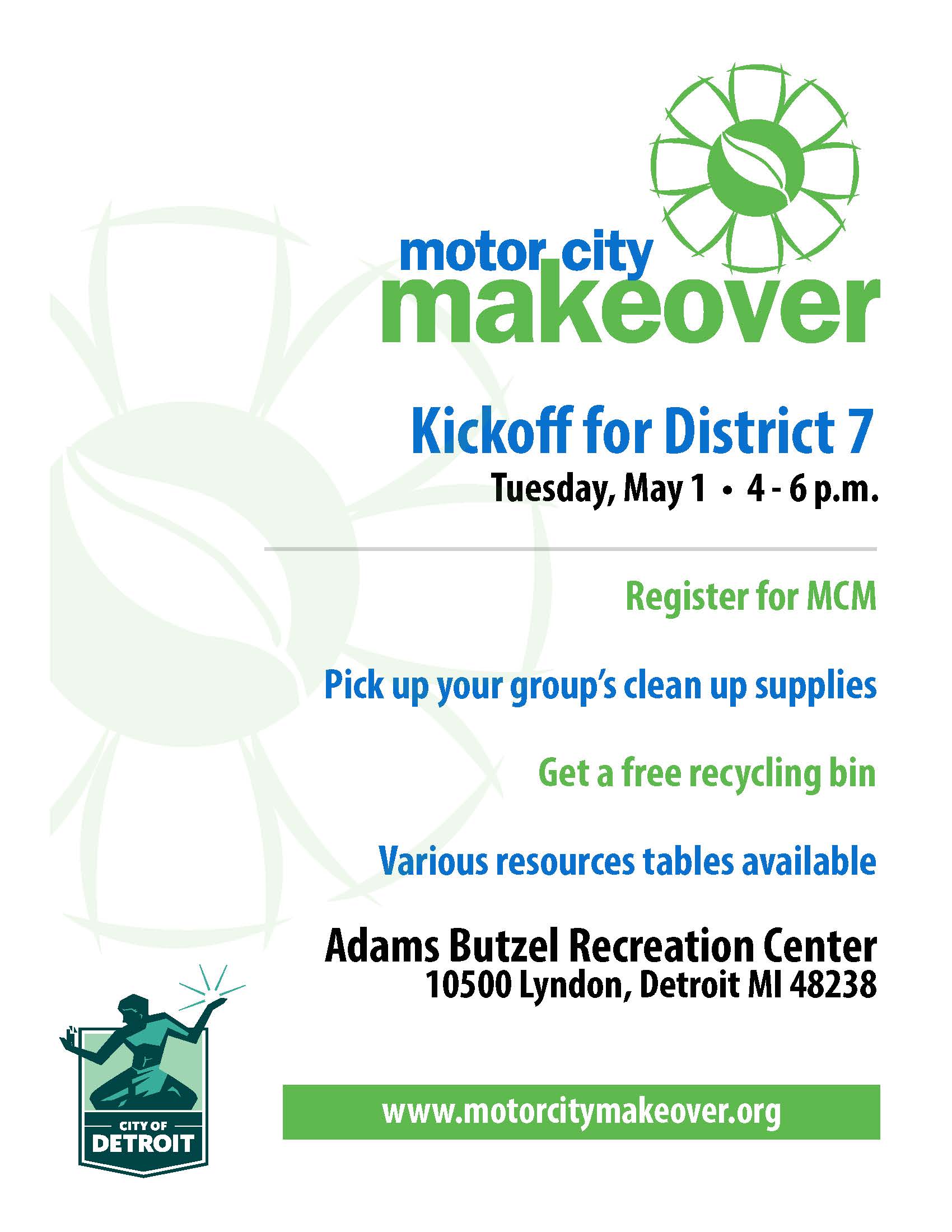 Motor City Makeover Kickoff for District 7! Tomorrow, May 1st at Adams Butzel! City of Detroit, Michigan sent this bulletin at 04/30/2018 10:05 AM EDT MCM_DistrictFlyer_Page_7.jpg