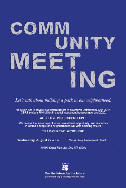 Give Merit to host Community Meeting for New Park Development! August 22nd! City of Detroit, Michigan sent this bulletin at 08/21/2018 01:48 PM EDT Give+Merritt.JPG