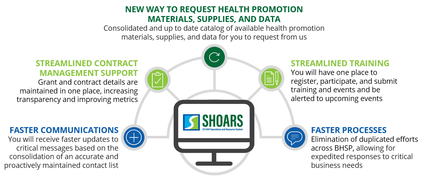 The STI/HIV Operations and Resource System (SHOARS) will allow partners to engage with the diverse resources of the Division of HIV/STI Programs (DHSP). Design and development of SHOARS is moving along really well. SHOARS will improve the relationship between MDHHS and external partners to efficiently provide services for Michiganders who are at risk and/or living with HIV & STIs.