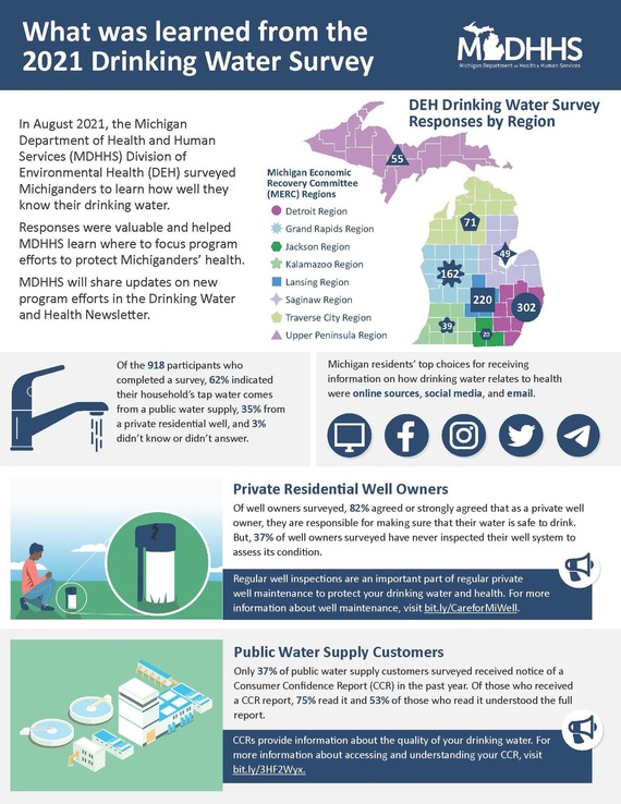 In August of 2021, the MDHHS Division of Environmental Health (DEH) surveyed Michiganders to learn how well they know their drinking water.