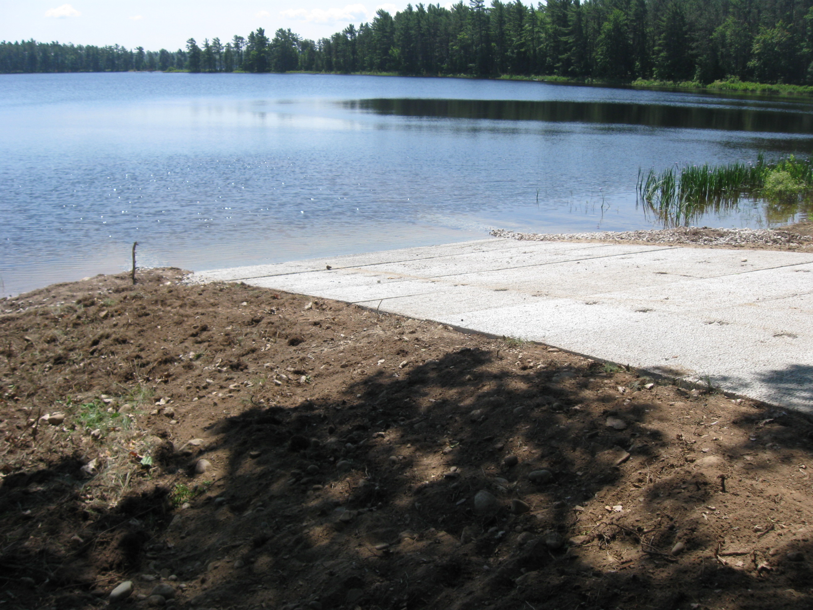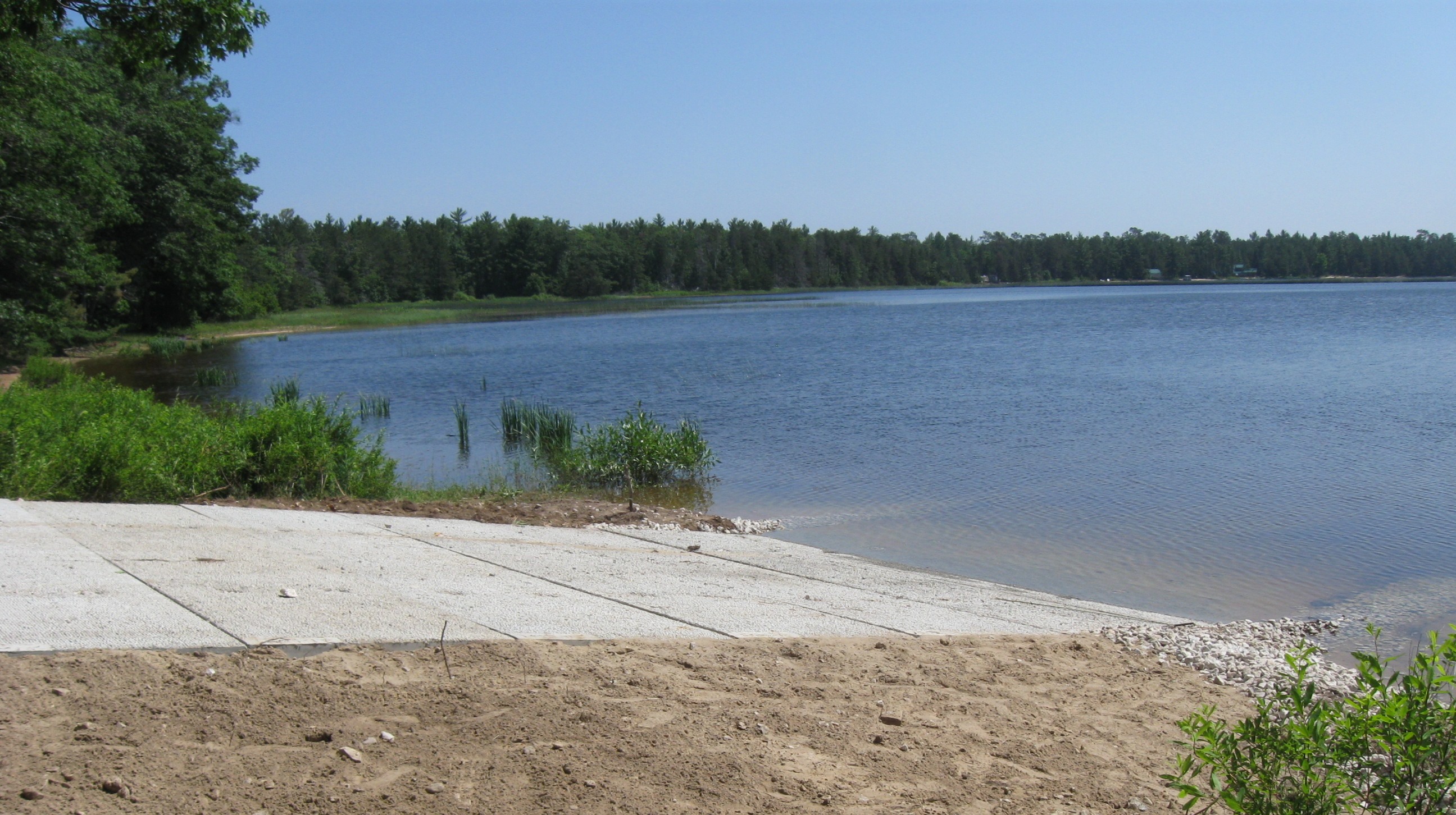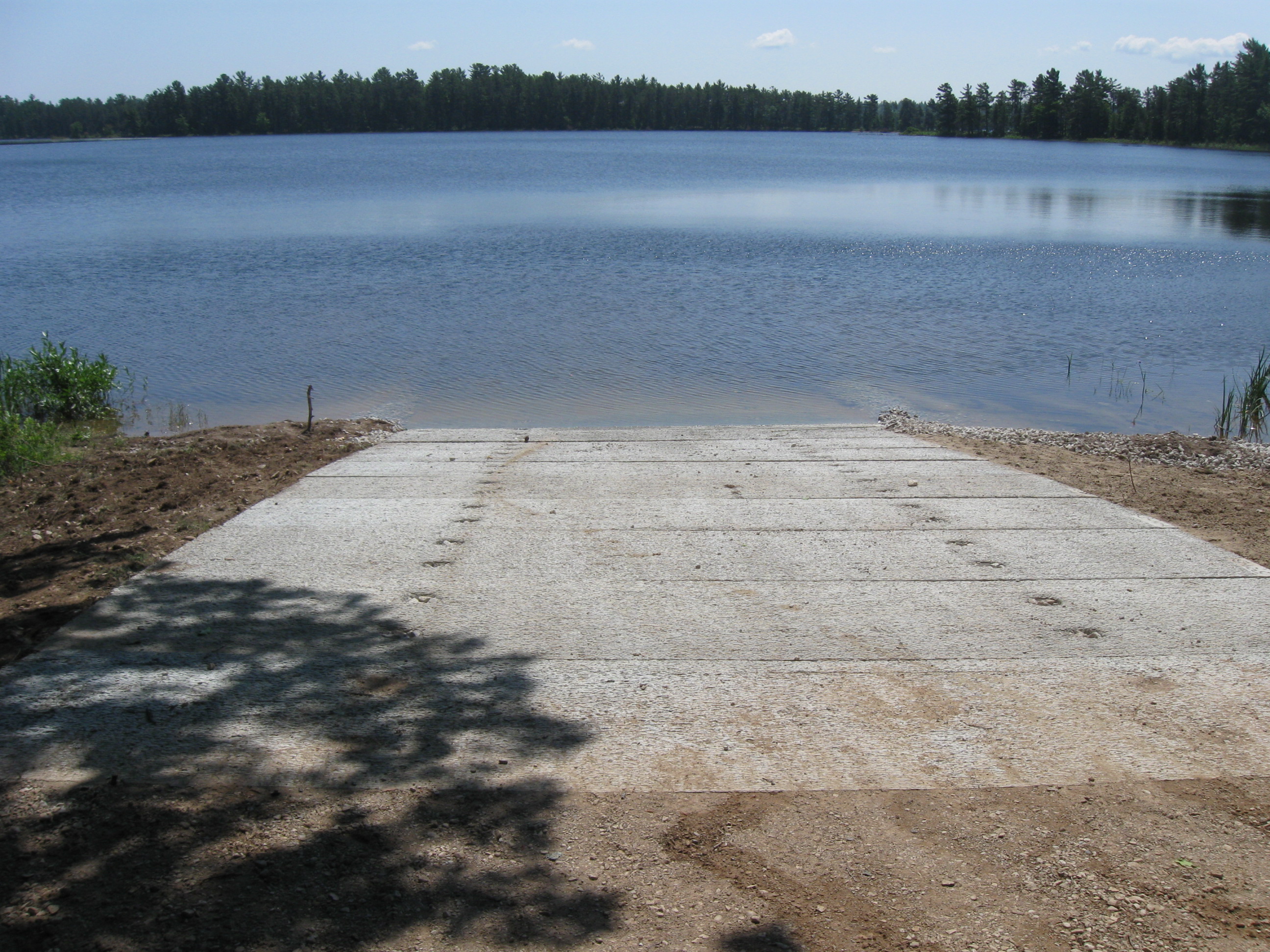 The old boat launch consisted of 12-foot-wide concrete slabs bolted together, which did not extend into the water. The new launch is 18-foot-wide concrete and allows for easier launching. In addition, workers dredged the lake bottom around the launch to a depth of more than 4 feet.