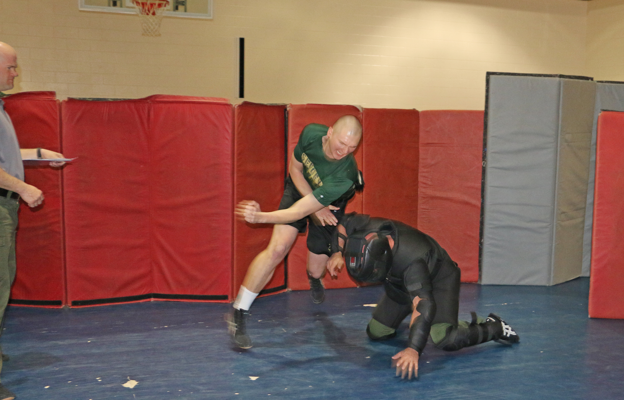Wednesday afternoon, recruits were back in the gymnasium finishing up final survival tactics testing and evaluations. This included vehicle extractions and the use of intermediate weapons such as batons and restraints.