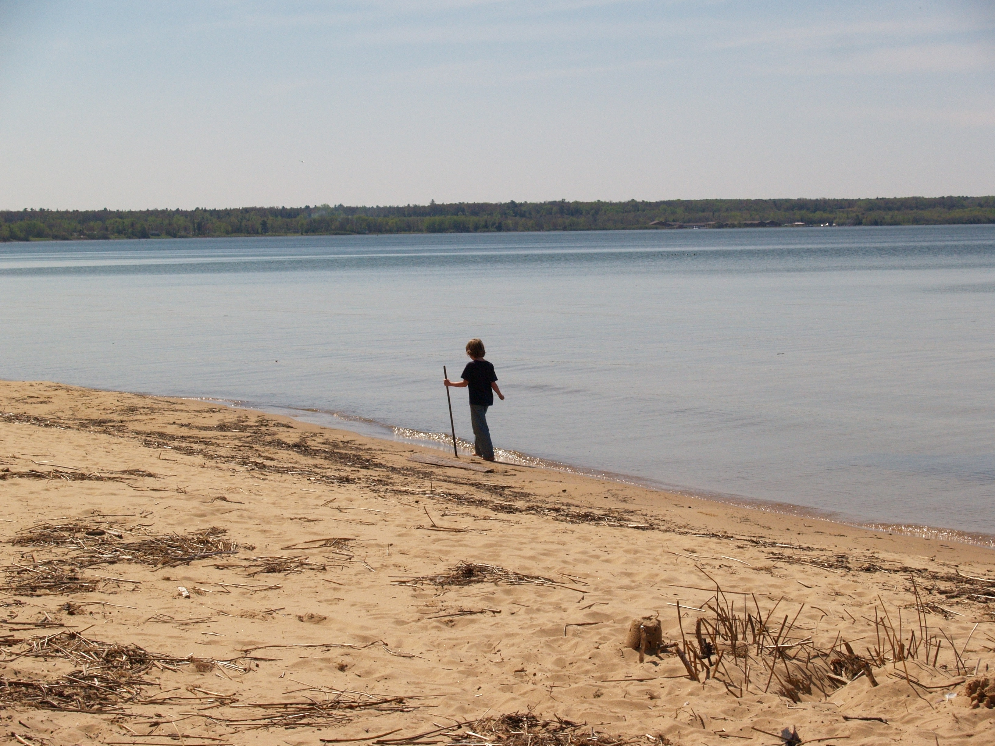 Beach: A visitor takes a walk along on quiet Lake Superior beach at Brimley State Park near Sault Ste. Marie in Chippewa County.