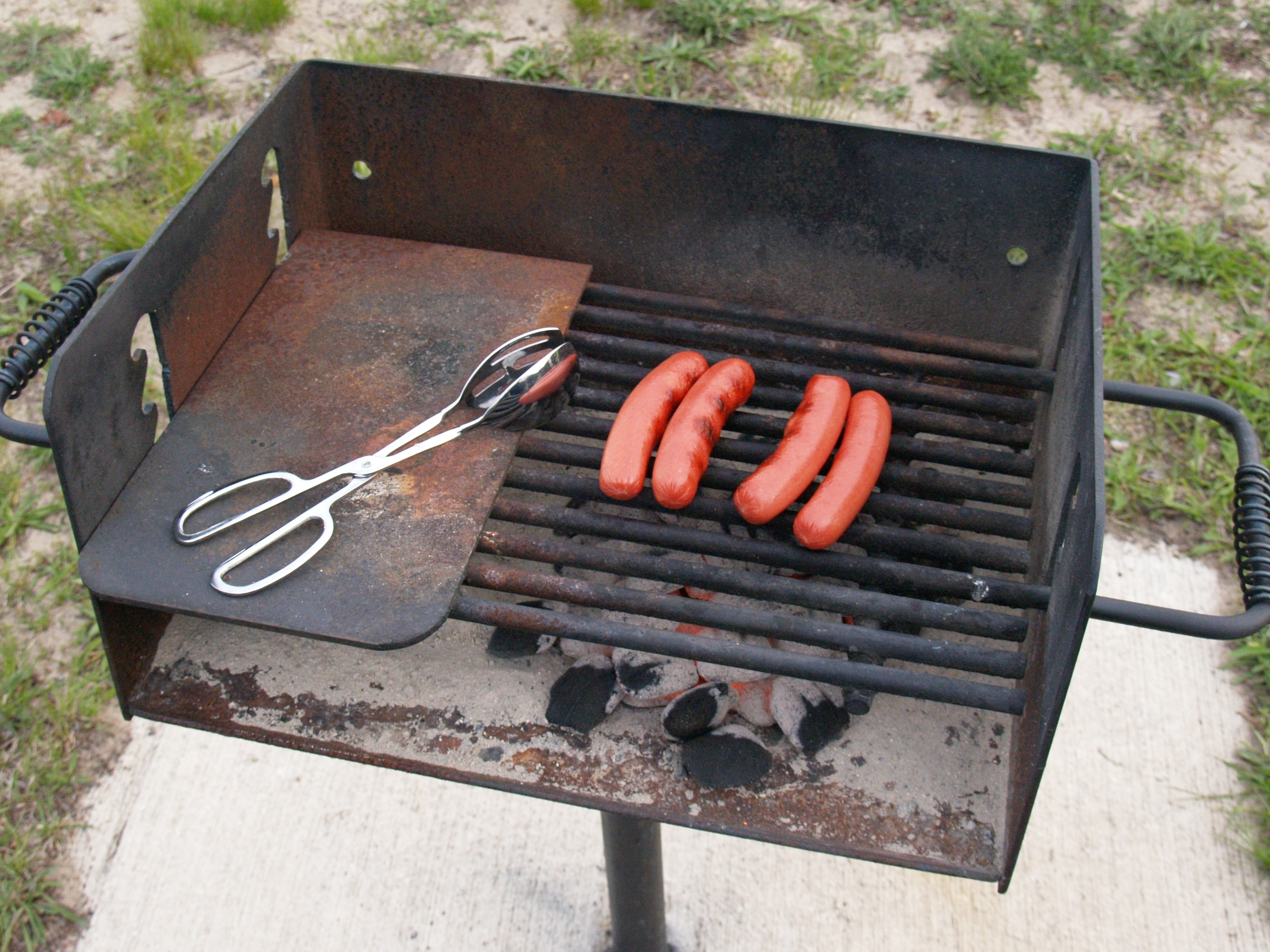 Grill: The grill is fired-up and the brats are cooking on a cool afternoon at a Michigan state park.