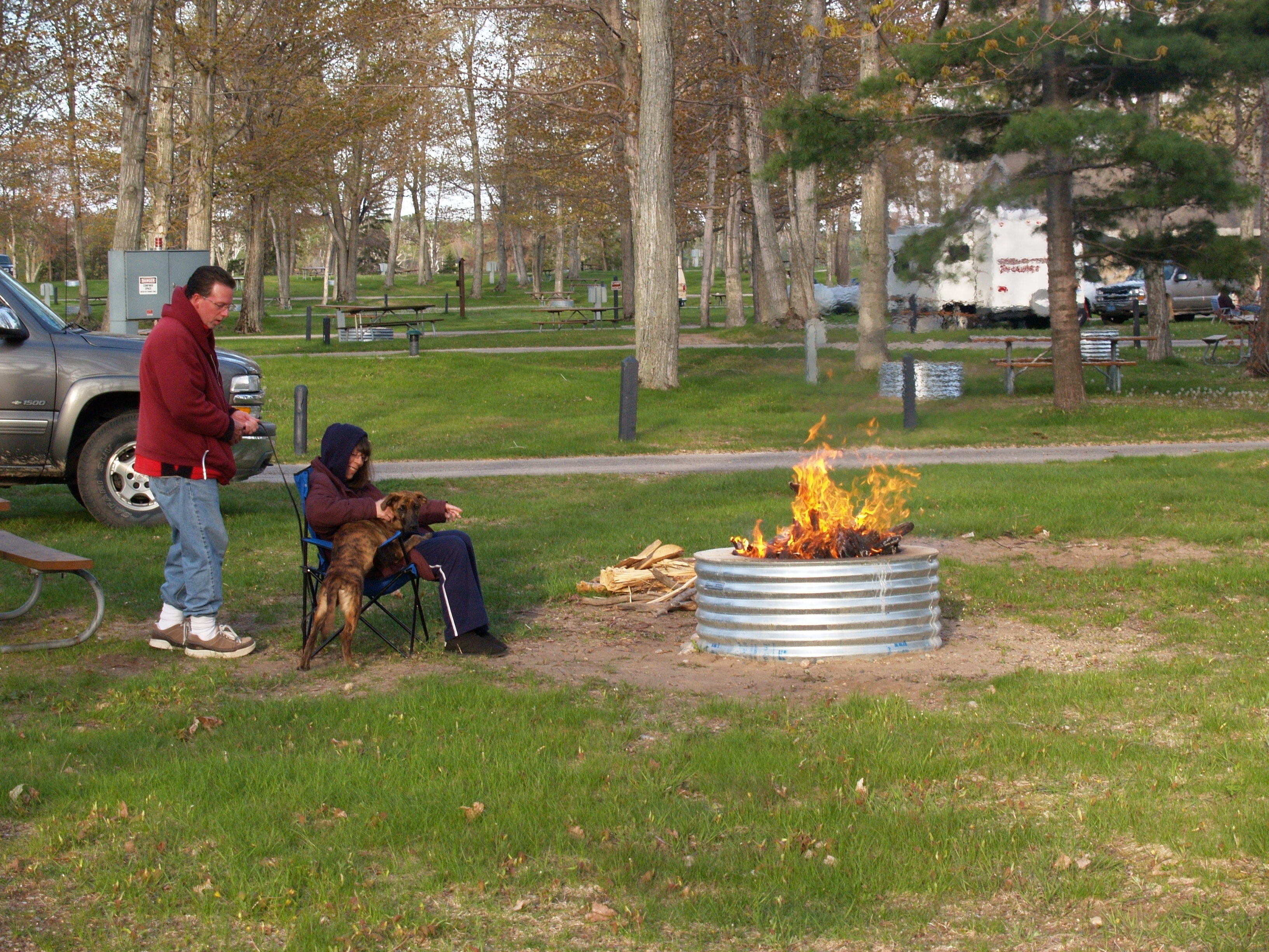 Campfire: Campers enjoy a fire at Muskallonge Lake State Park in northern Luce County. Fall camping in Michigan state parks and recreation areas has many advantages, including cooler weather, smaller crowds, outstanding wildlife viewing, special fall festivals and much more.