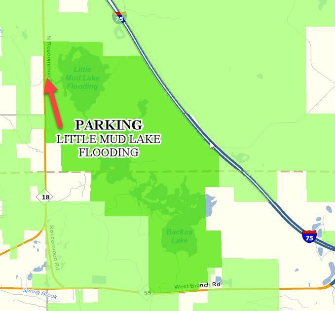 Little Mud Lake Parking: This map shows the location of parking for the Little Mud Lake Flooding./