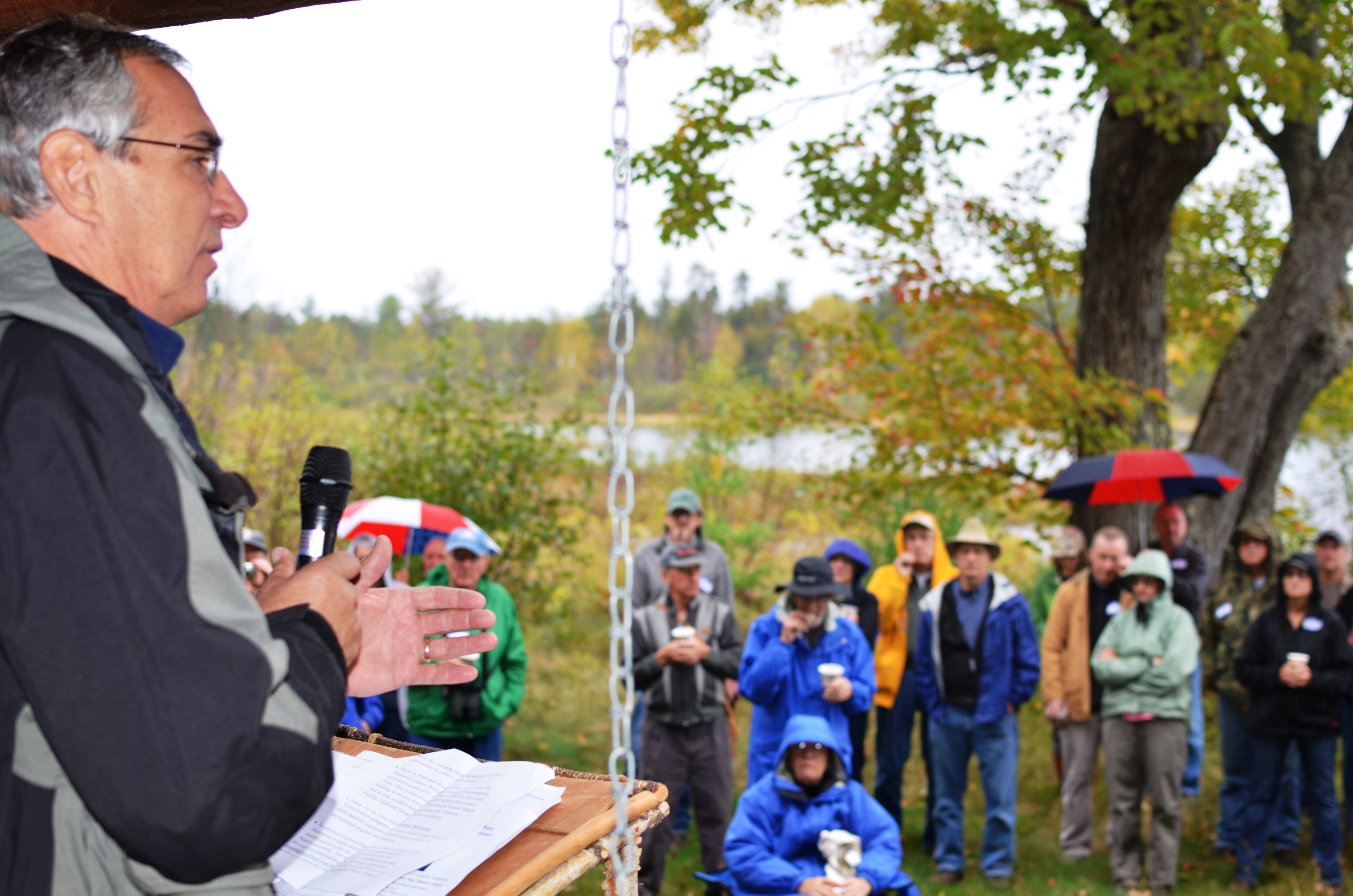 Melius: Tom Melius, U.S. Fish and Wildlife Service regional director, talks Tuesday at the Abbaye Peninsula – Huron Bay Conservation Initiative Dedication in Baraga County.