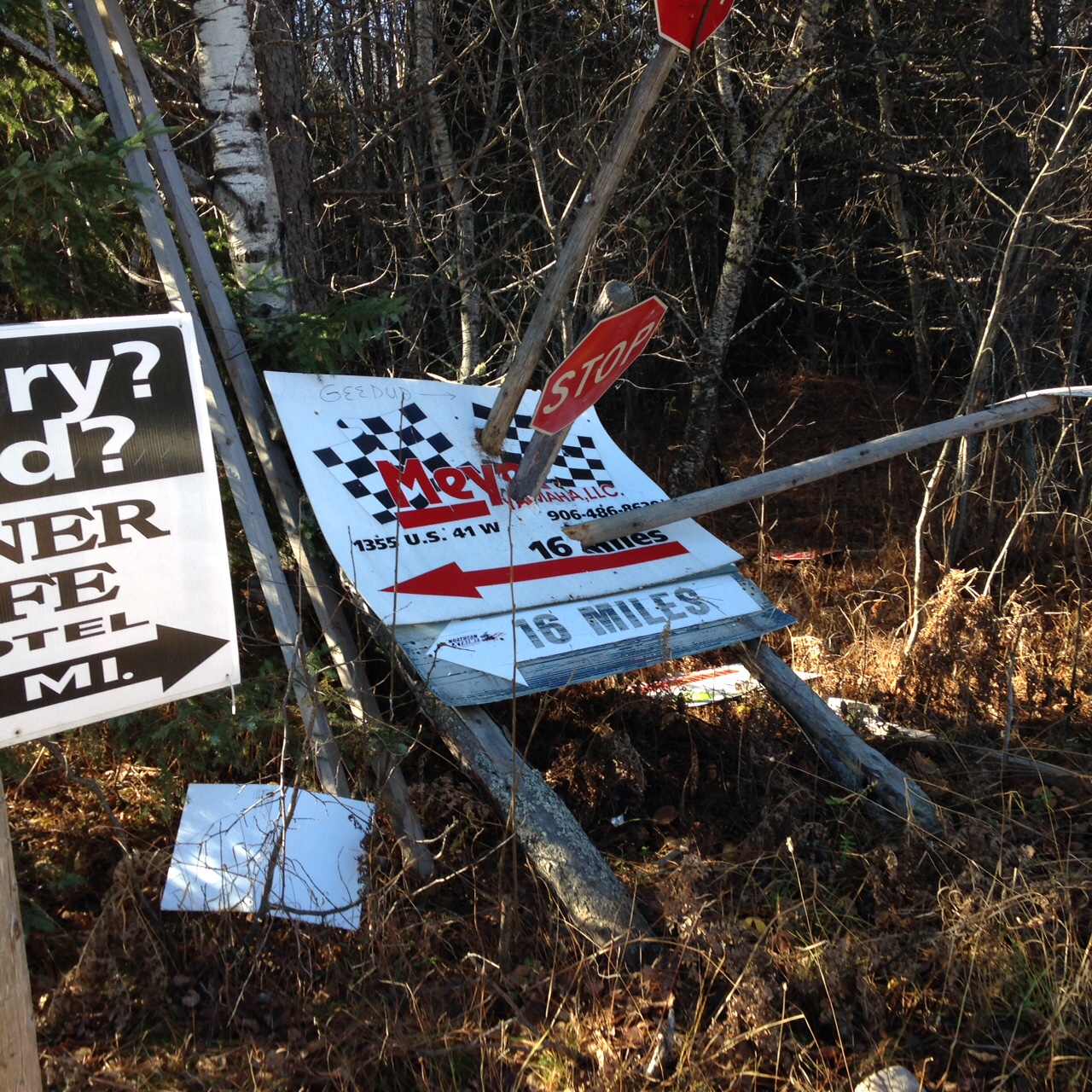 Signs were knocked down, run over or otherwise vandalized along Trail No. 8 and Trail No. 5 over the past weekend, Nov. 11-13. The location of the damage is situated in the Champion area, roughly 30 miles west of Marquette.