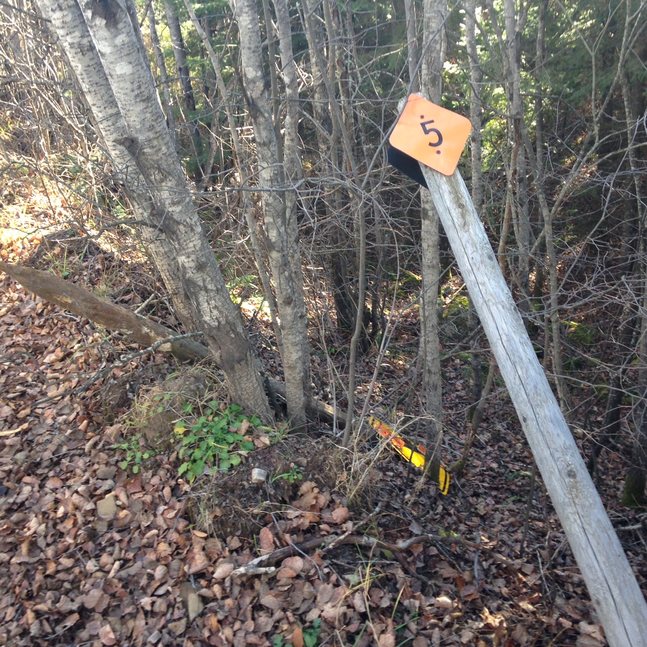 Trail: One of the numerous trail markers knocked down or removed recently from two snowmobile trails in western Marquette County./