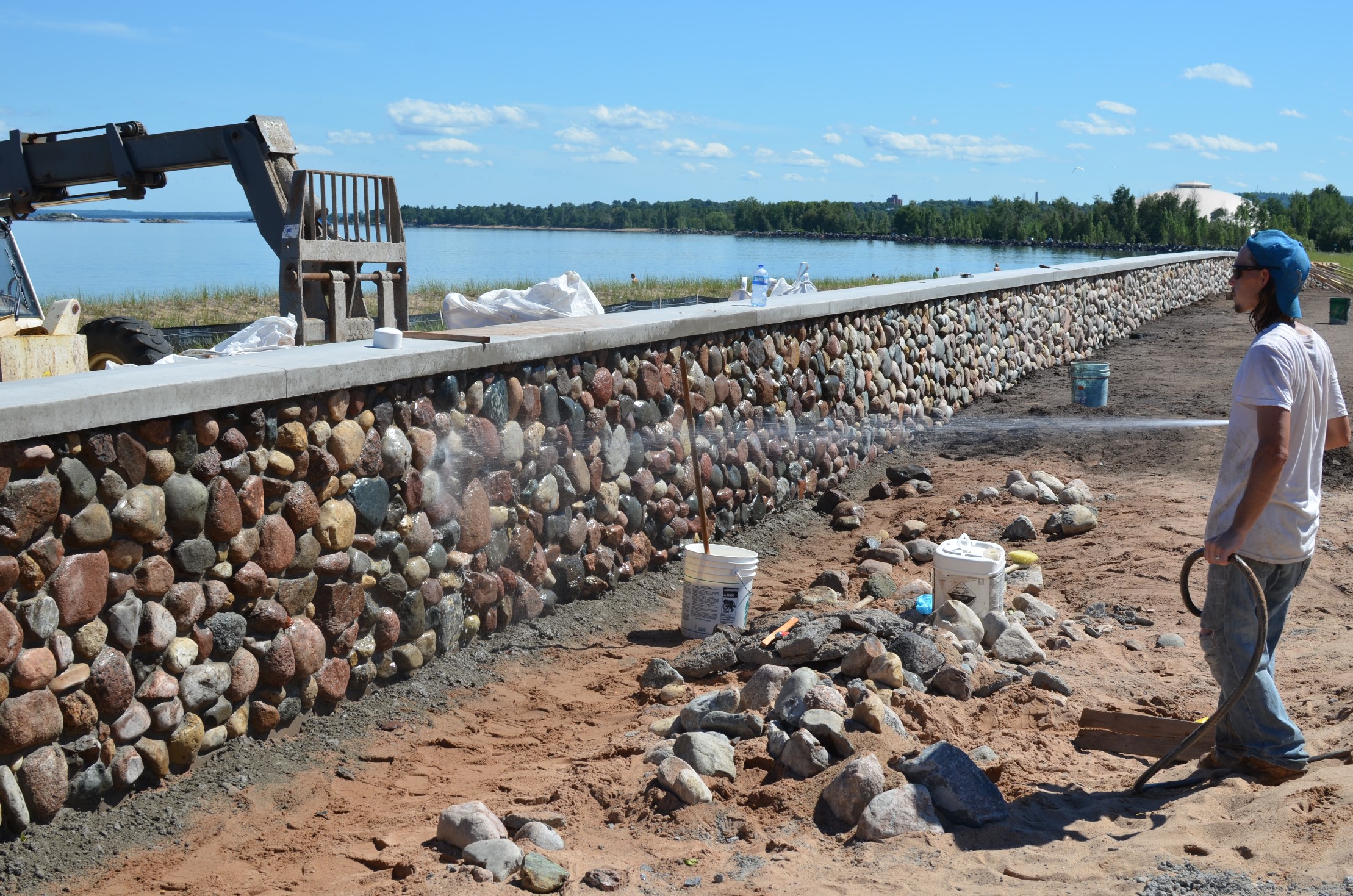 Clark: Workers building a decorative wall at Clark Lambros Beach Park in Marquette County this past summer.