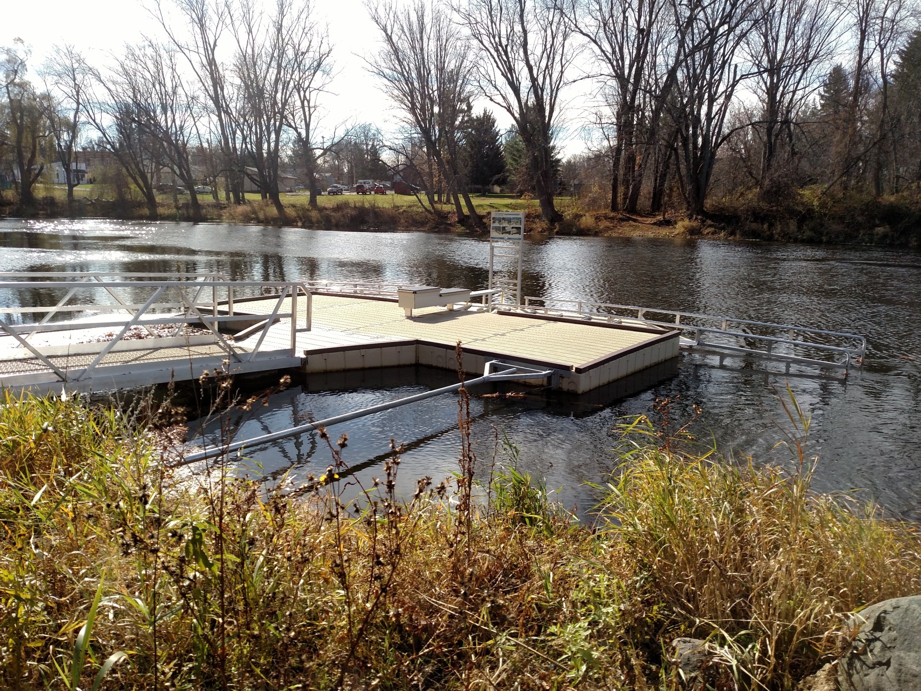 The village used grant money to build a bridge to the island across the river, create better access to the area, and install a universally accessible canoe/kayak ramp.