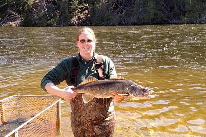 Walleye+2016.jpg: DNR staff will collect eggs and milt from adult walleye from the Muskegon River at the Pine Street public access site throughout the coming weeks./