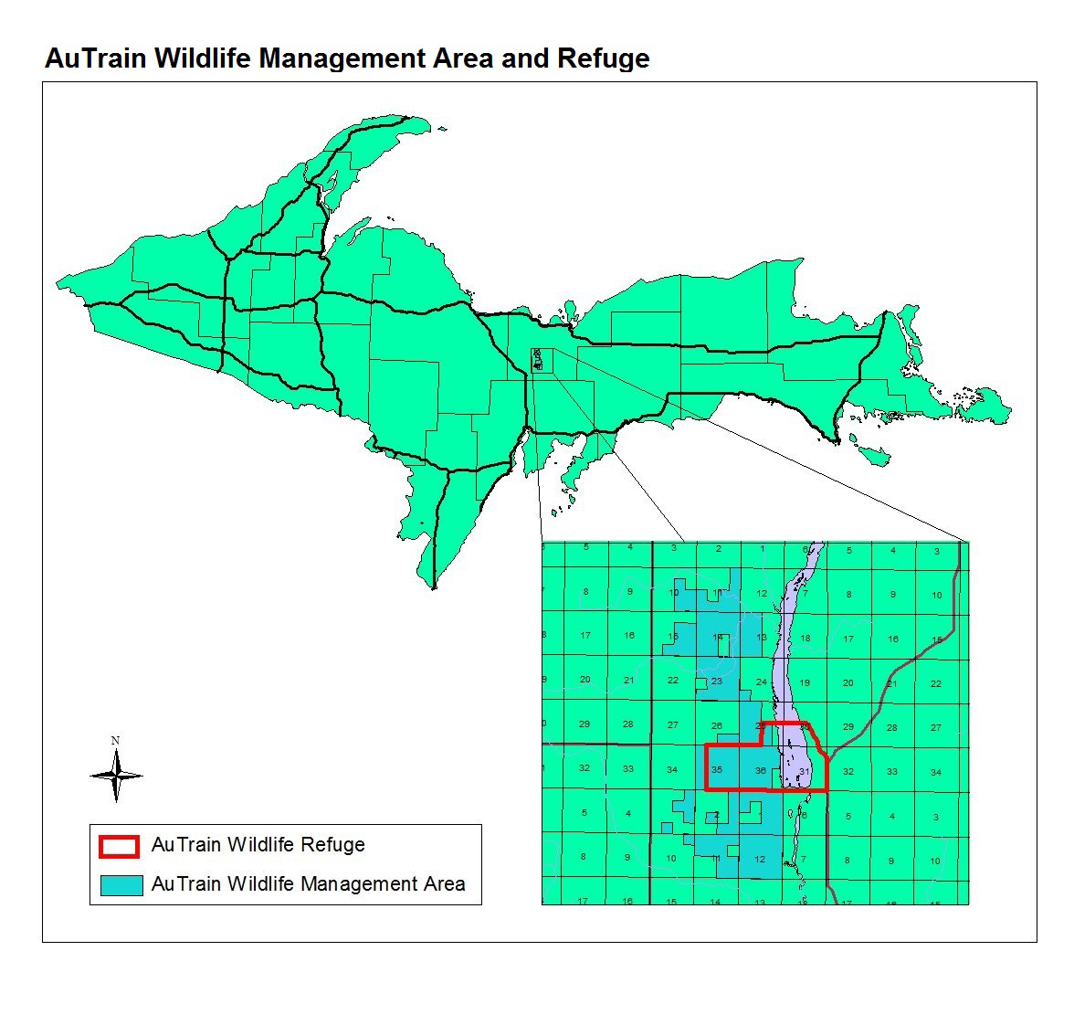 Map: A locator map shows the AuTrain Management Area and Wildlife Refuge.
