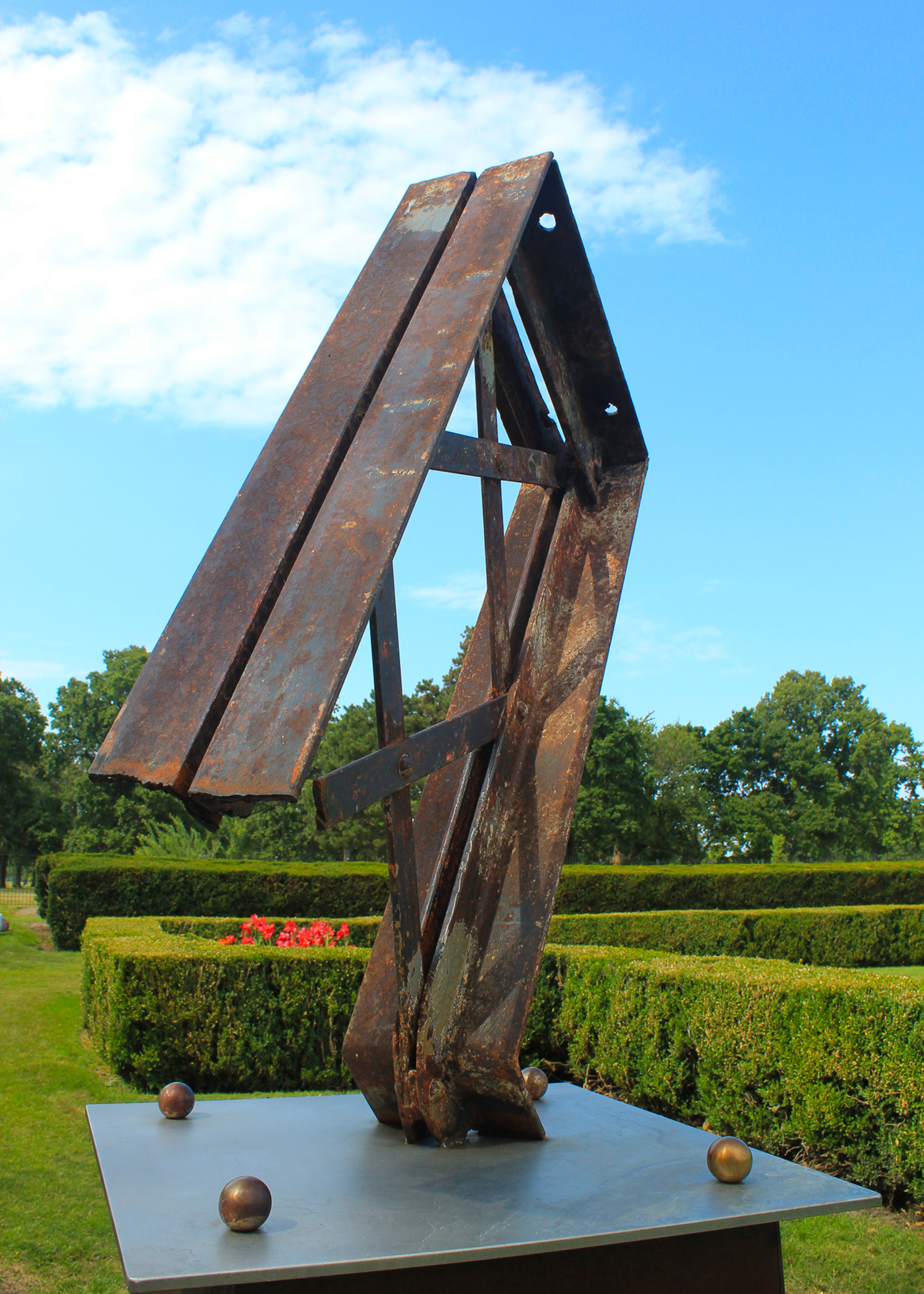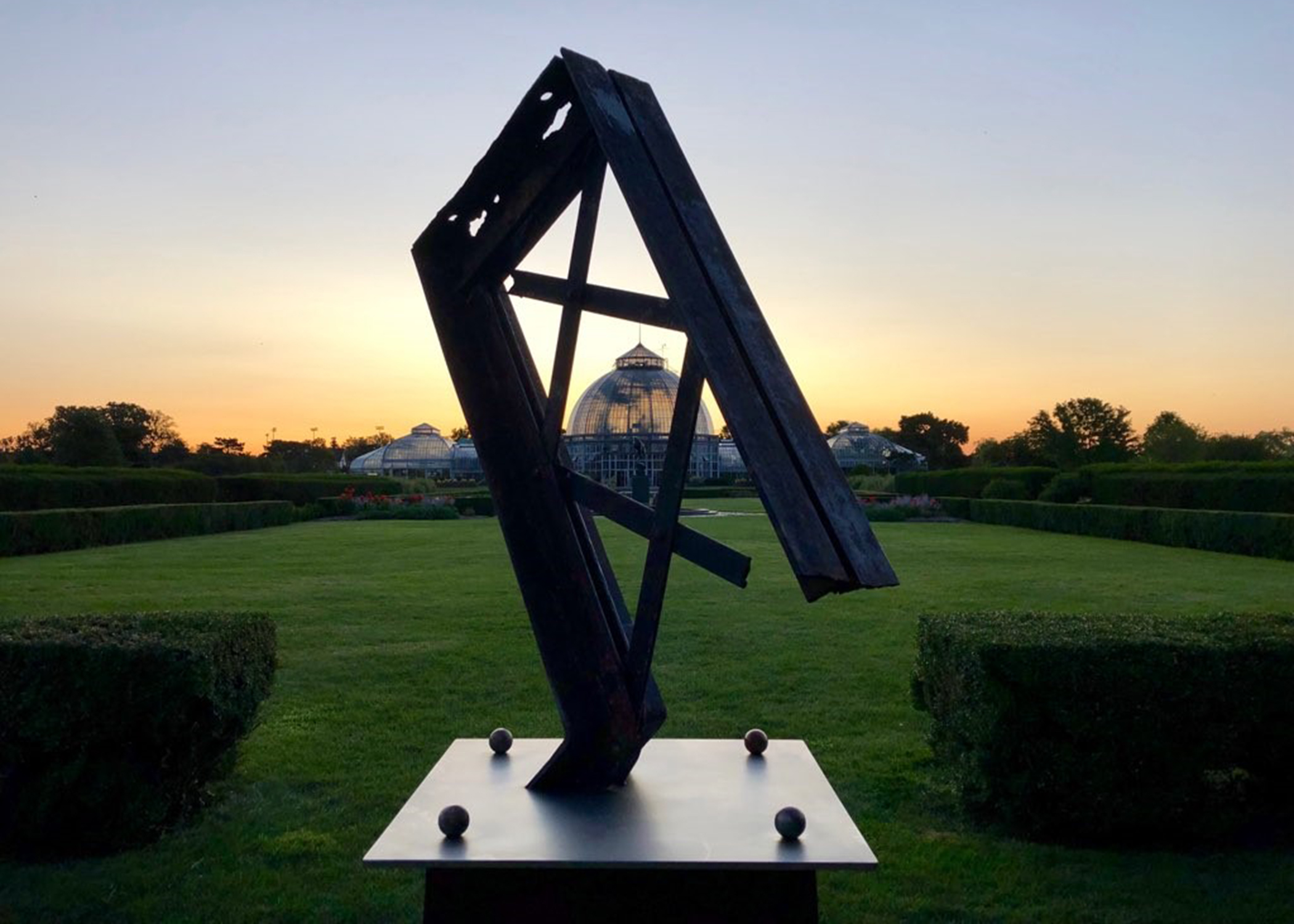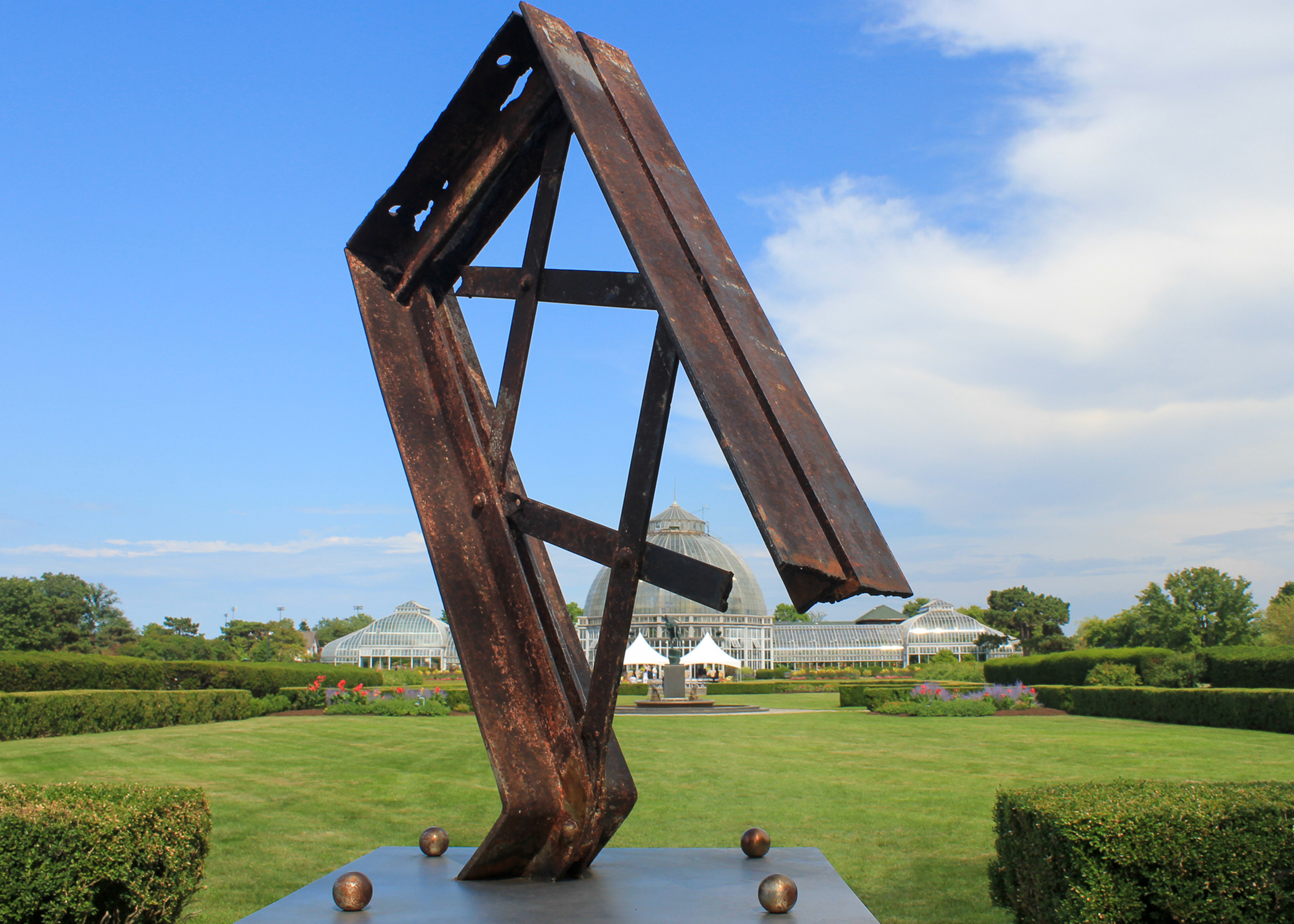 The sculpture, created by Detroit Design Center co-owners and brothers Erik and Israel Nordin, incorporates a piece of the conservatory’s original truss structure. The Detroit artists, inspired by the Ralph C. Wilson, Jr. Foundation’s contribution to the park, donated the art piece to recognize the foundation’s support of the Detroit community. Situated in the conservatory garden near the east entrance, the public art sculpture, named The Dancer, represents the heartfelt thanks extended to the foundation by the brothers on behalf of the citizens of Detroit.