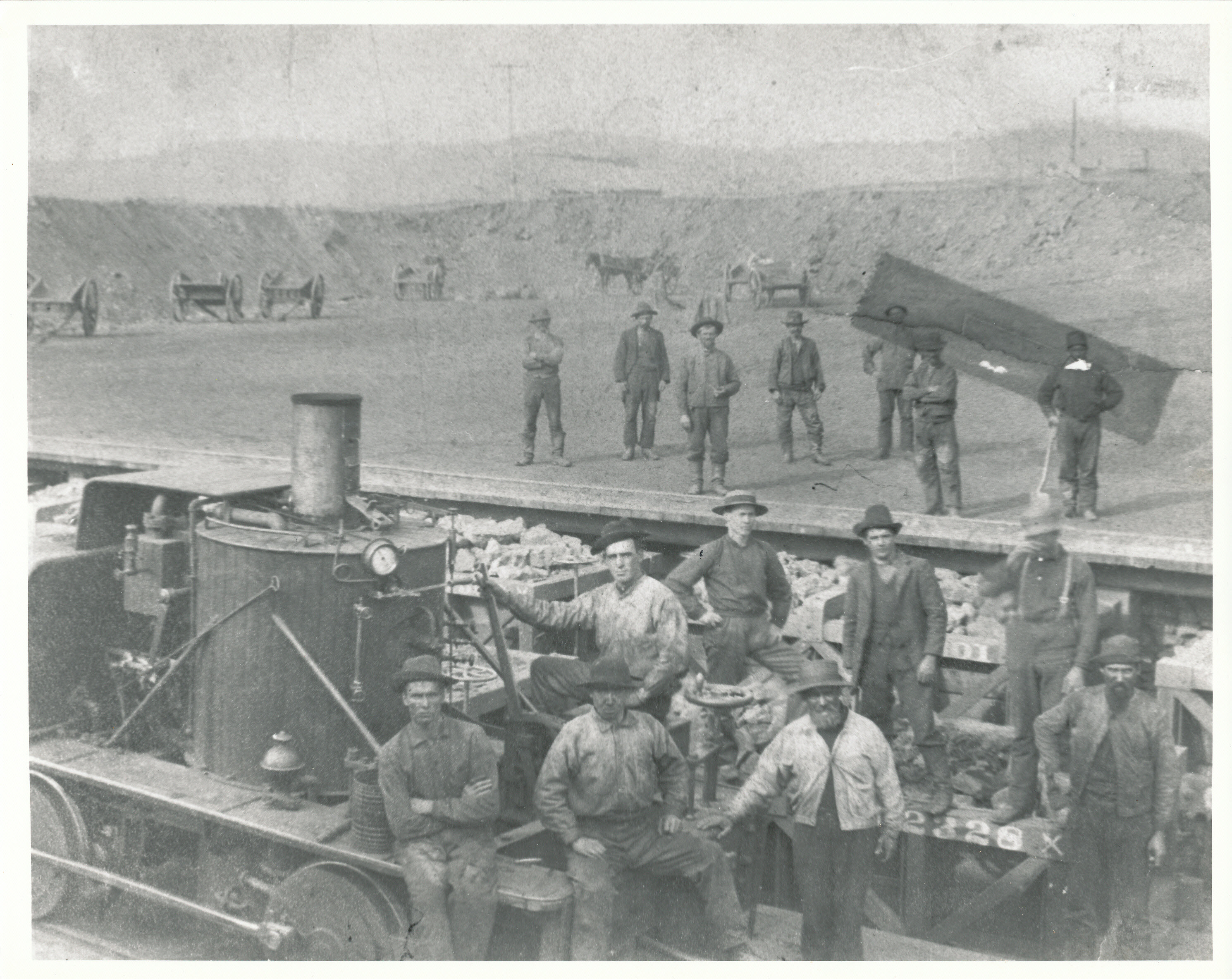 Yankee_Then: Miners pose with the Yankee locomotive at the Jackson Mine, Negaunee, circa 1880. Credit: Archives of Michigan.