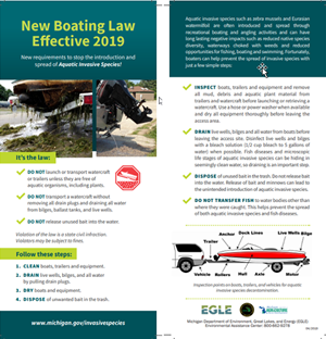 - This rack card describes new boating laws requiring boaters to remove all debris and aquatic plants from boats and trailers and to remove plugs and drain all water from bilges and live wells before transporting.