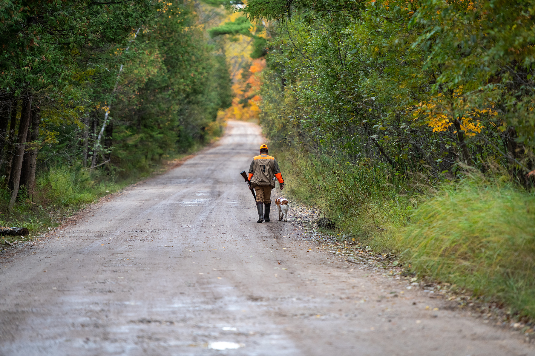 Hunting: A hunter and his dog walk through the Pigeon River Country State Forest in the northern Lower Peninsula.
