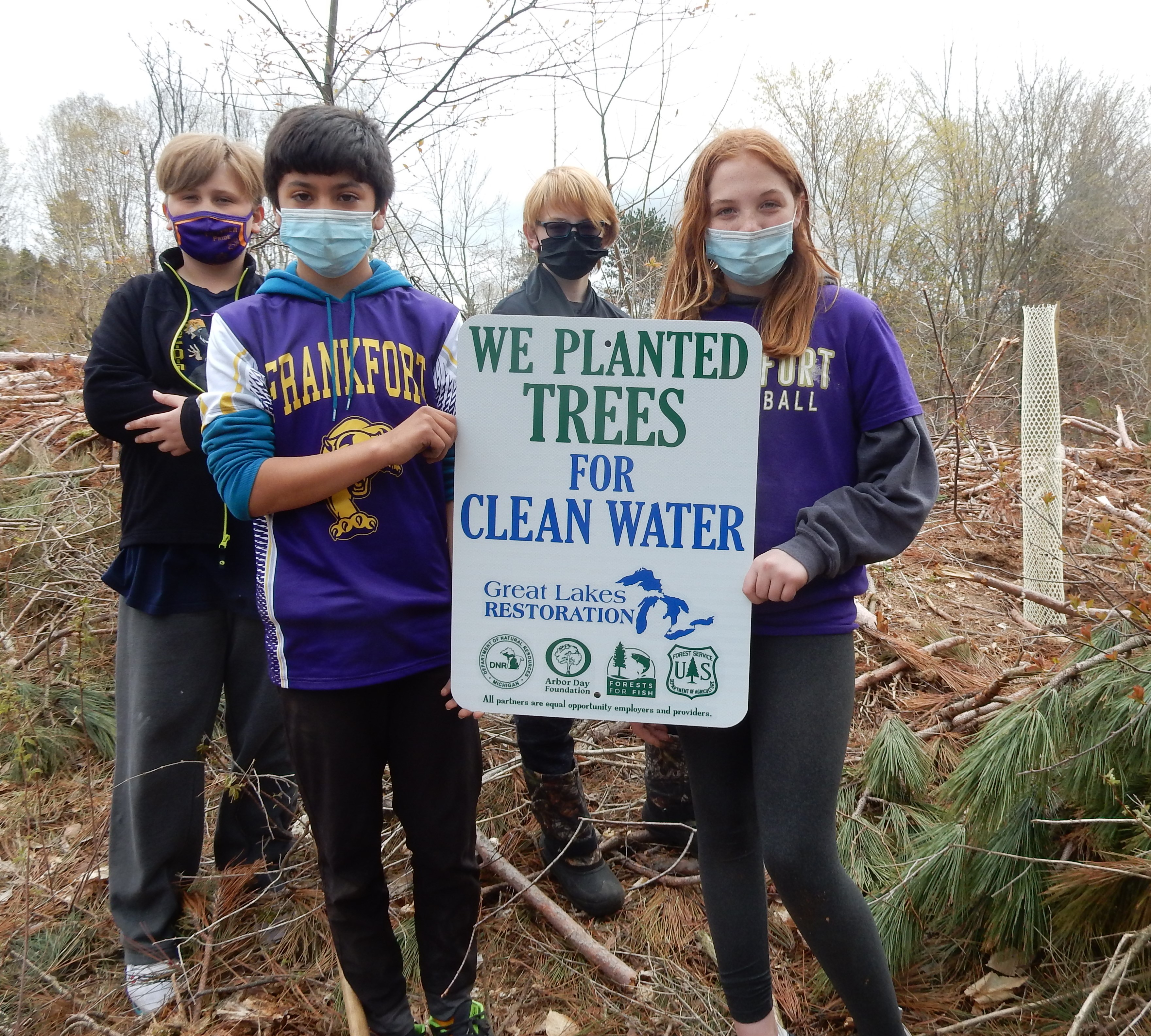 Tree planters: Kids from the Frankfort-Elberta school district worked together this spring to plant trees in their school forest.