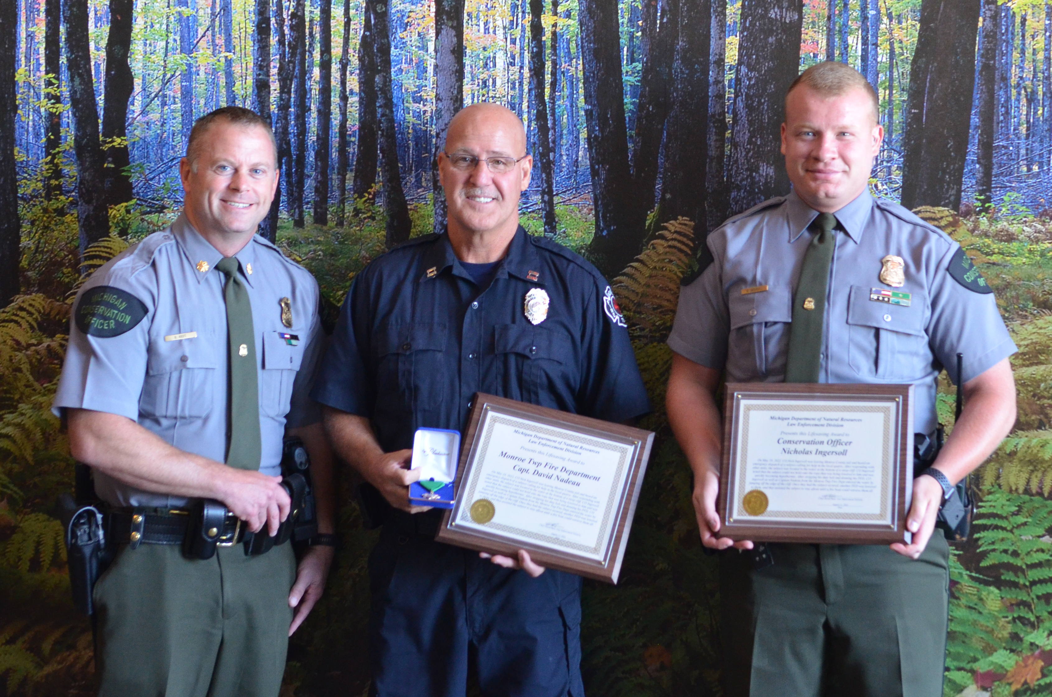 “On behalf of the department, I am proud to recognize CO Ingersoll and Capt. Nadeau for their quick assessment of the situation, which required them to risk their own safety to save another,” said Chief Dave Shaw, DNR Law Enforcement Division. “We are grateful for the teamwork with the Monroe Charter Township Fire Department, Michigan State Police and other responding agencies that turned this into a successful lifesaving effort.”