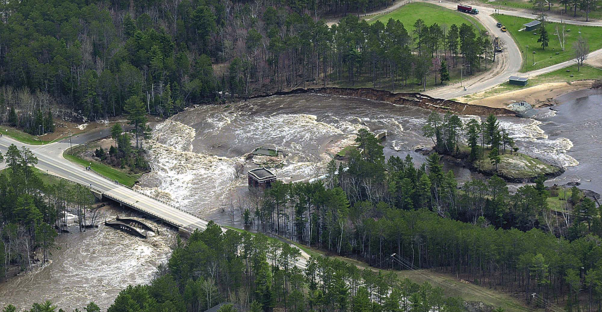 According to a post-event environmental assessment contracted for the Upper Peninsula Power Co. on the incident: “On May 14, 2003, a breach of the fuse plug occurred on the Silver Lake Basin, located on the Dead River in the Upper Peninsula of Michigan.