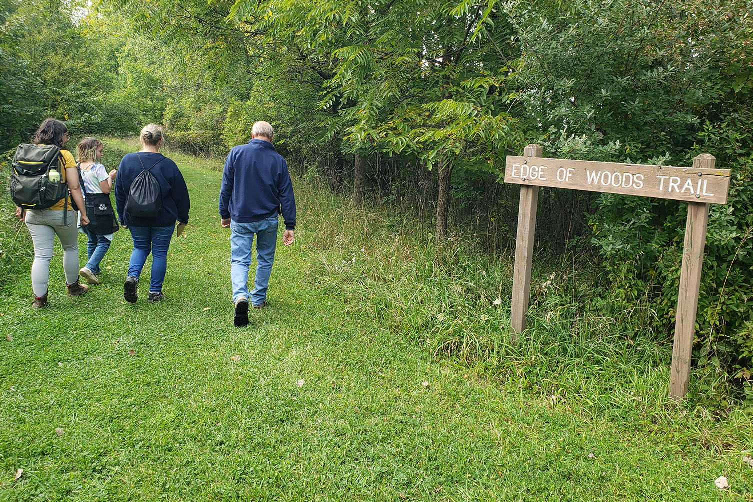 Trail: Participants in a community science project at For-Mar Nature Preserve in Burton head out on the trail to look for mushrooms.