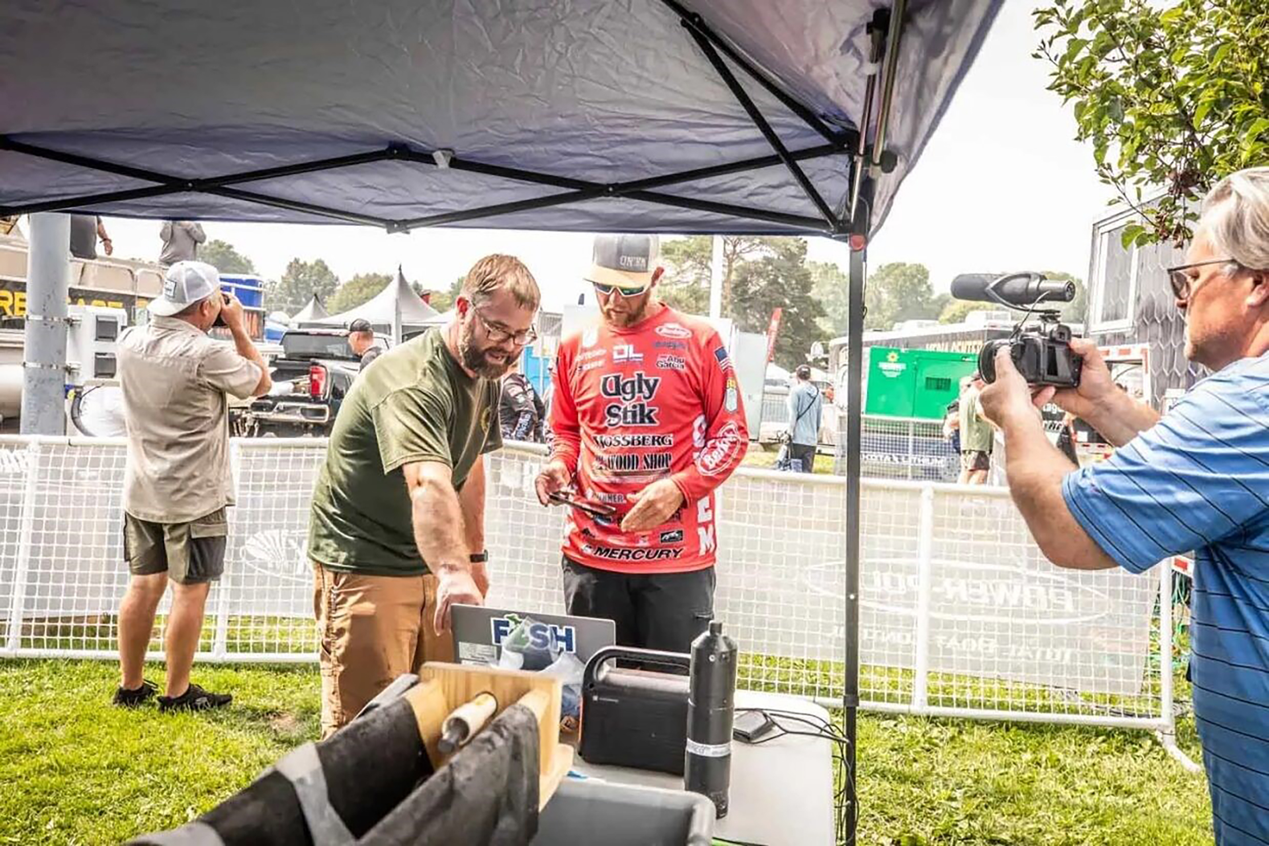In July 2023, DNR researchers partnered with the Bass Anglers Sportsman Society to tag smallmouth bass at the Bassmaster Elite Series tournament held at Brandenburg Park on Lake St. Clair.