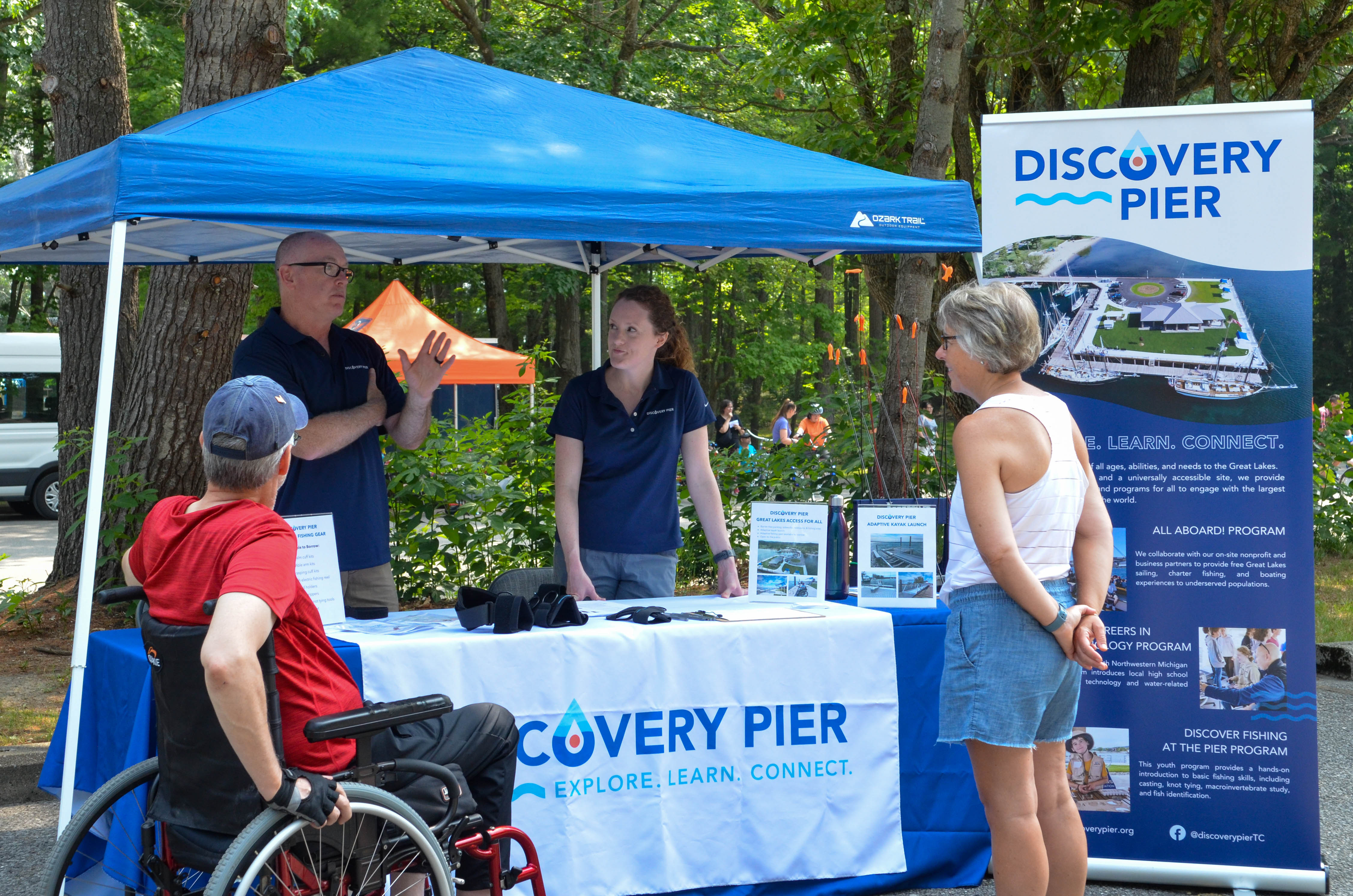 Booth: An information booth attracts participants at DiversAbility Day at Interlochen State Park.