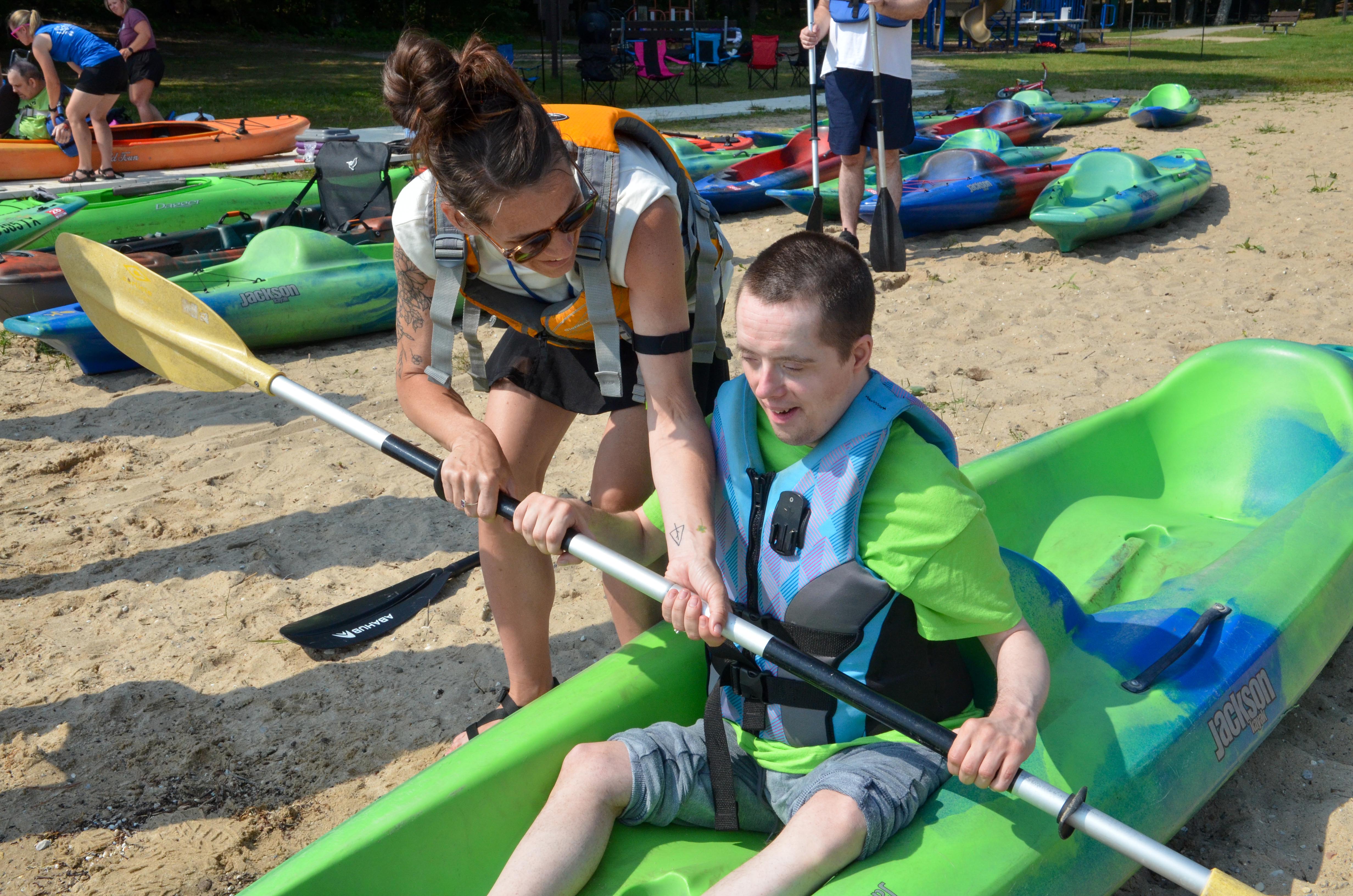 Paddler: A paddler gets some instruction and assistance before hitting the water at the DiversAbility Day at Interlochen State Park.