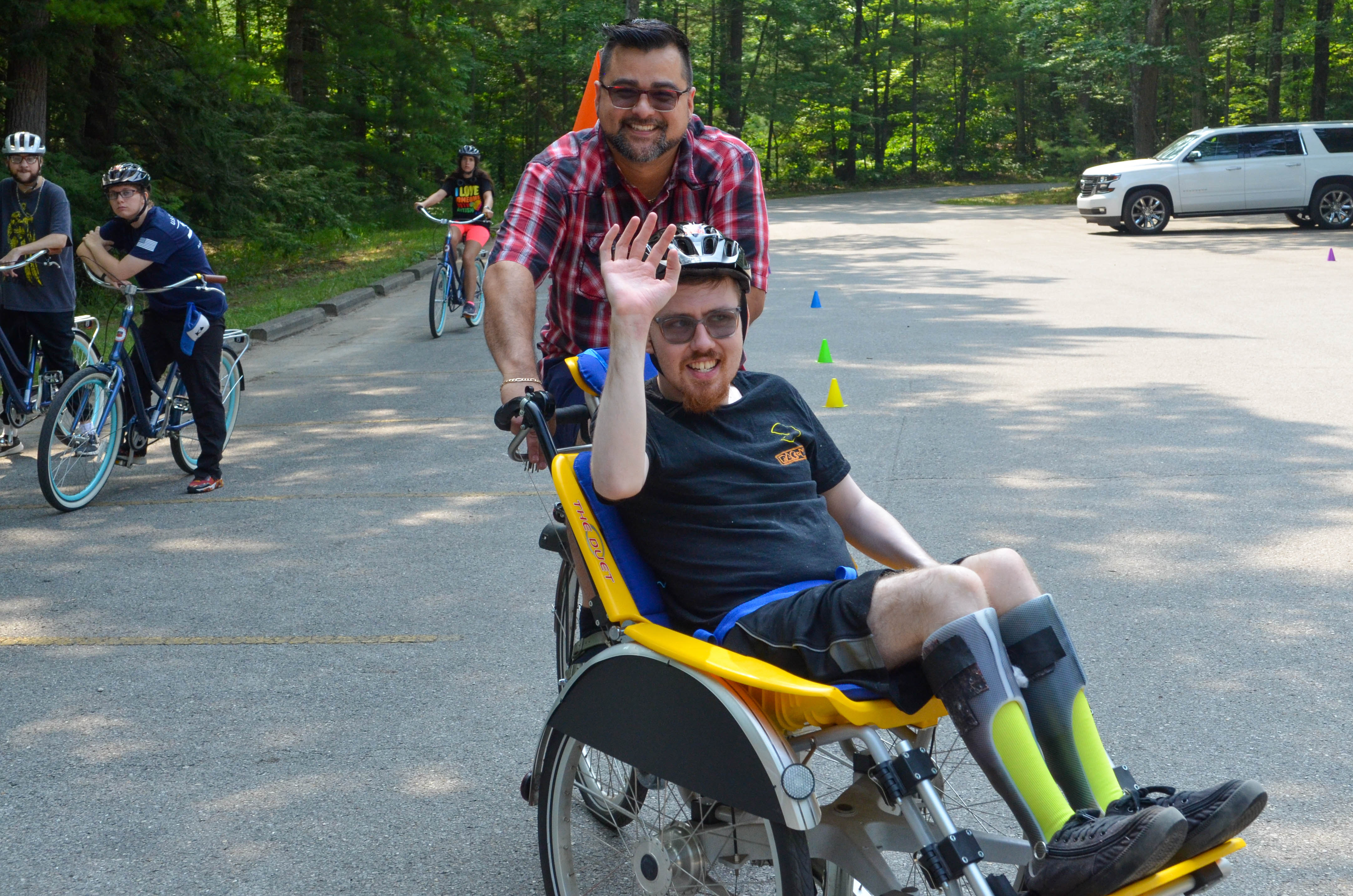 Along with riding the pontoon boat across Duck Lake, Andrew Kirsh also enjoyed using the hand cycle bike that was available to DiversAbility Day participants.