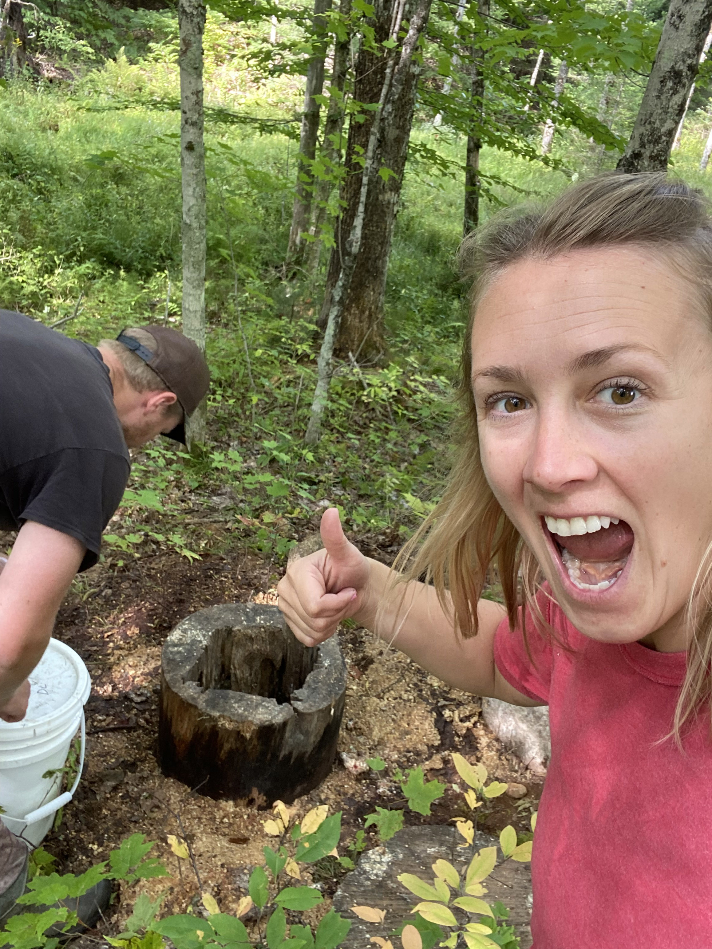 Baiting the stump: Don and Sara Brown bait a stump for bear hunting on state land in the central Upper Peninsula. (Photo courtesy of Don Brown)
