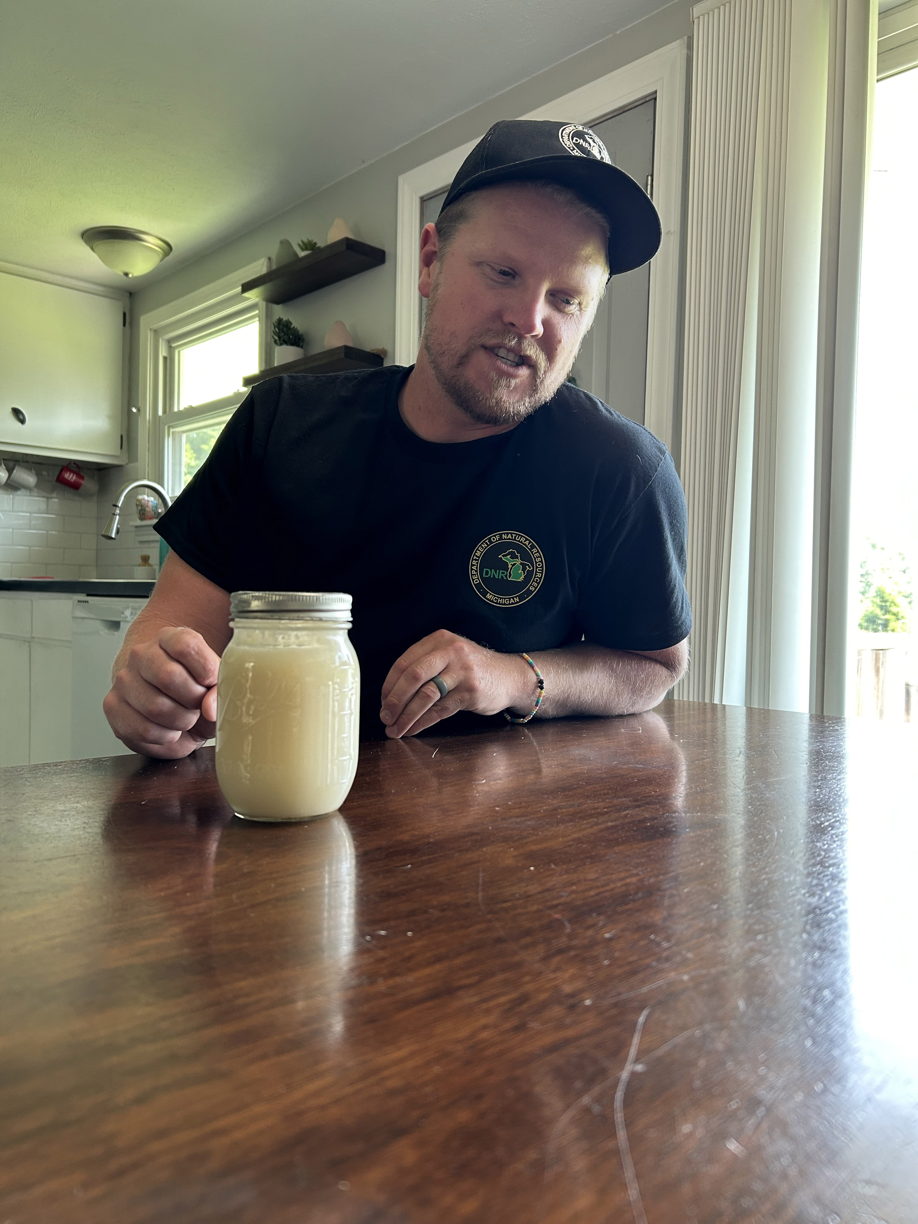 Bear grease: Don Brown discusses how he rendered bear fat into this bear grease and using it as a cooking oil. (Photo courtesy of Don Brown)