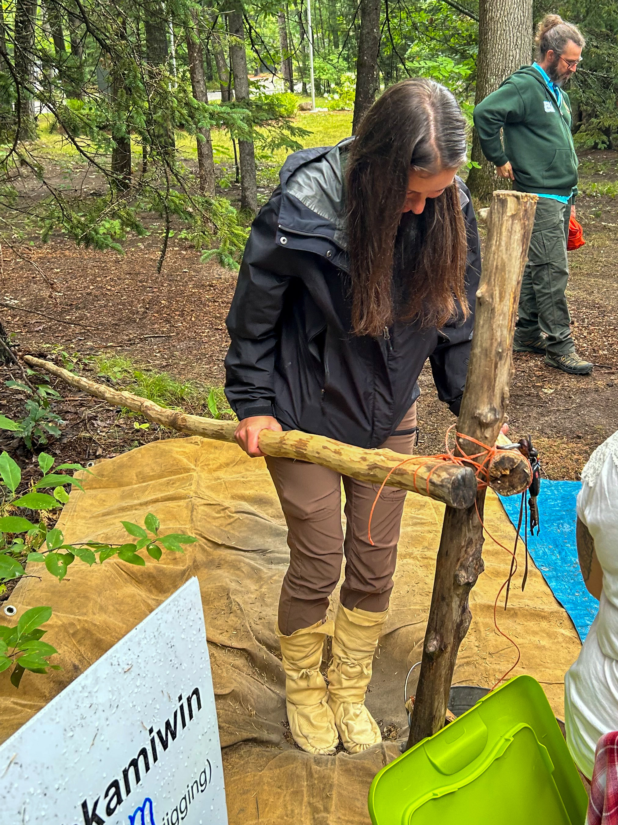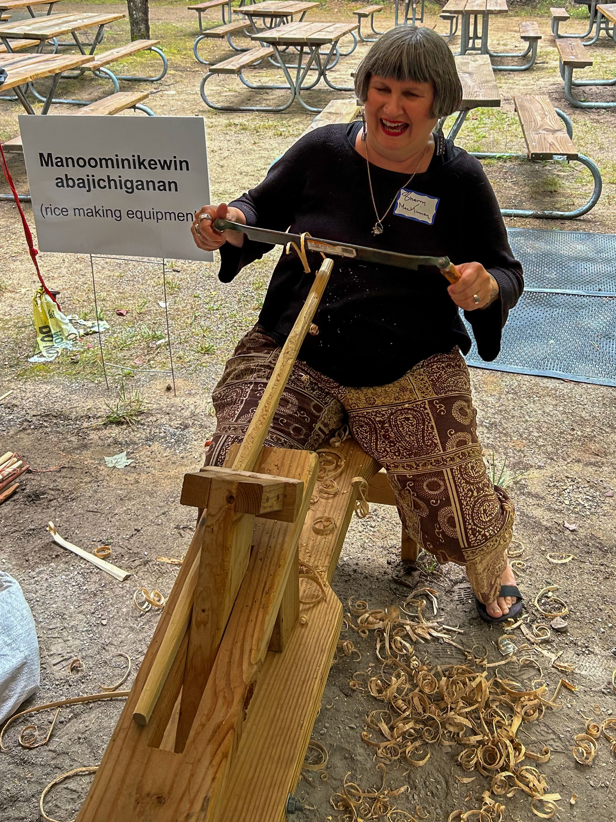 Tool making: Sherry MacKinnon, a U.P.-based wildlife ecologist for the Michigan Department of Natural Resources, makes a push pole used during the harvesting of manoomin from a canoe.