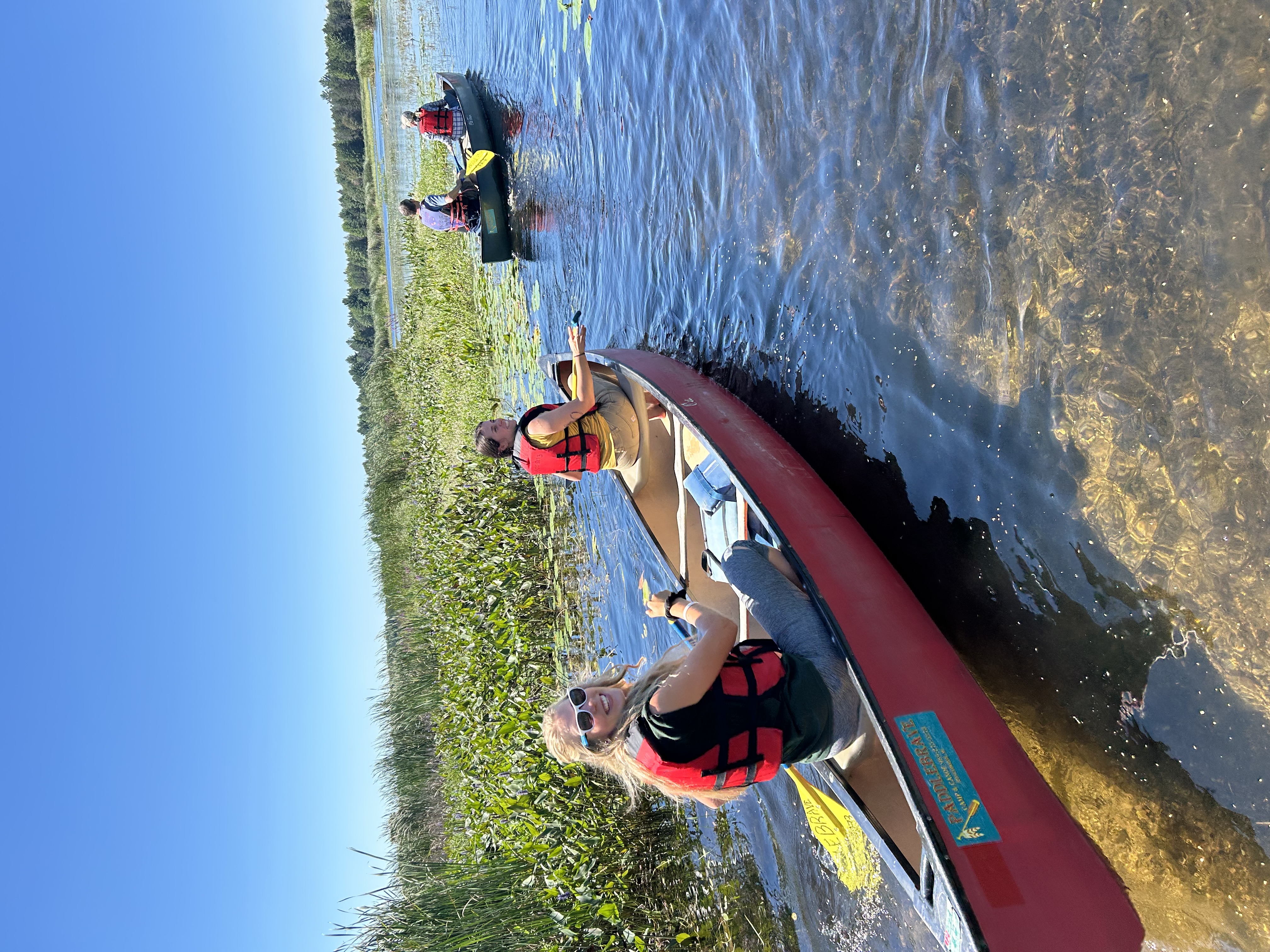 Heading out: Michigan Department of Natural Resources wildlife technician Rachel Leggett, left, and wildlife biologist Morgan Lucot head out to look at wild rice on the Muskegon River as part of the DNR’s manoomin camp in mid-August.