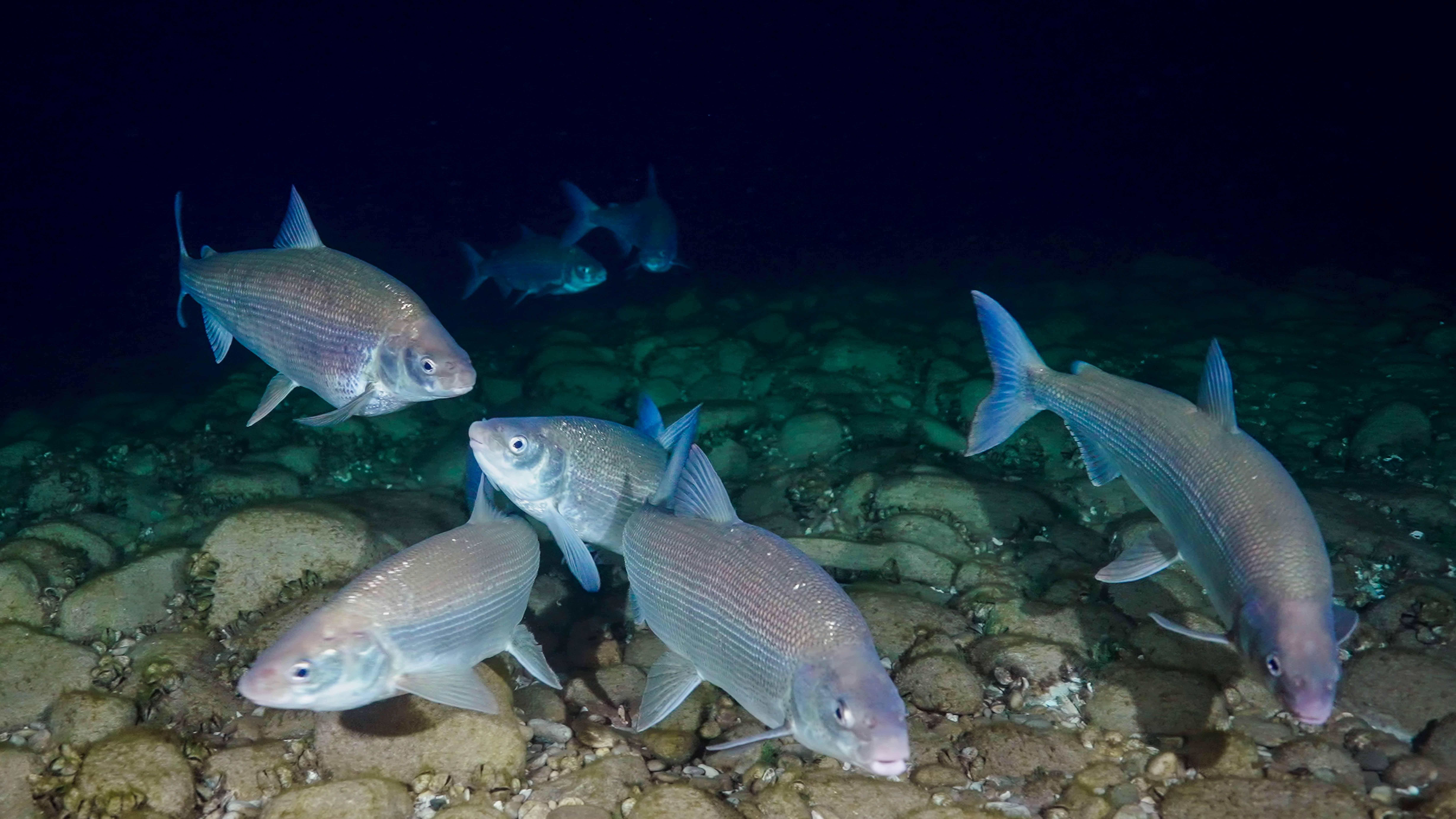 Reef-6: Lake whitefish are shown congregating over rocky cobble. (Photo: Inspired Planet Productions)
