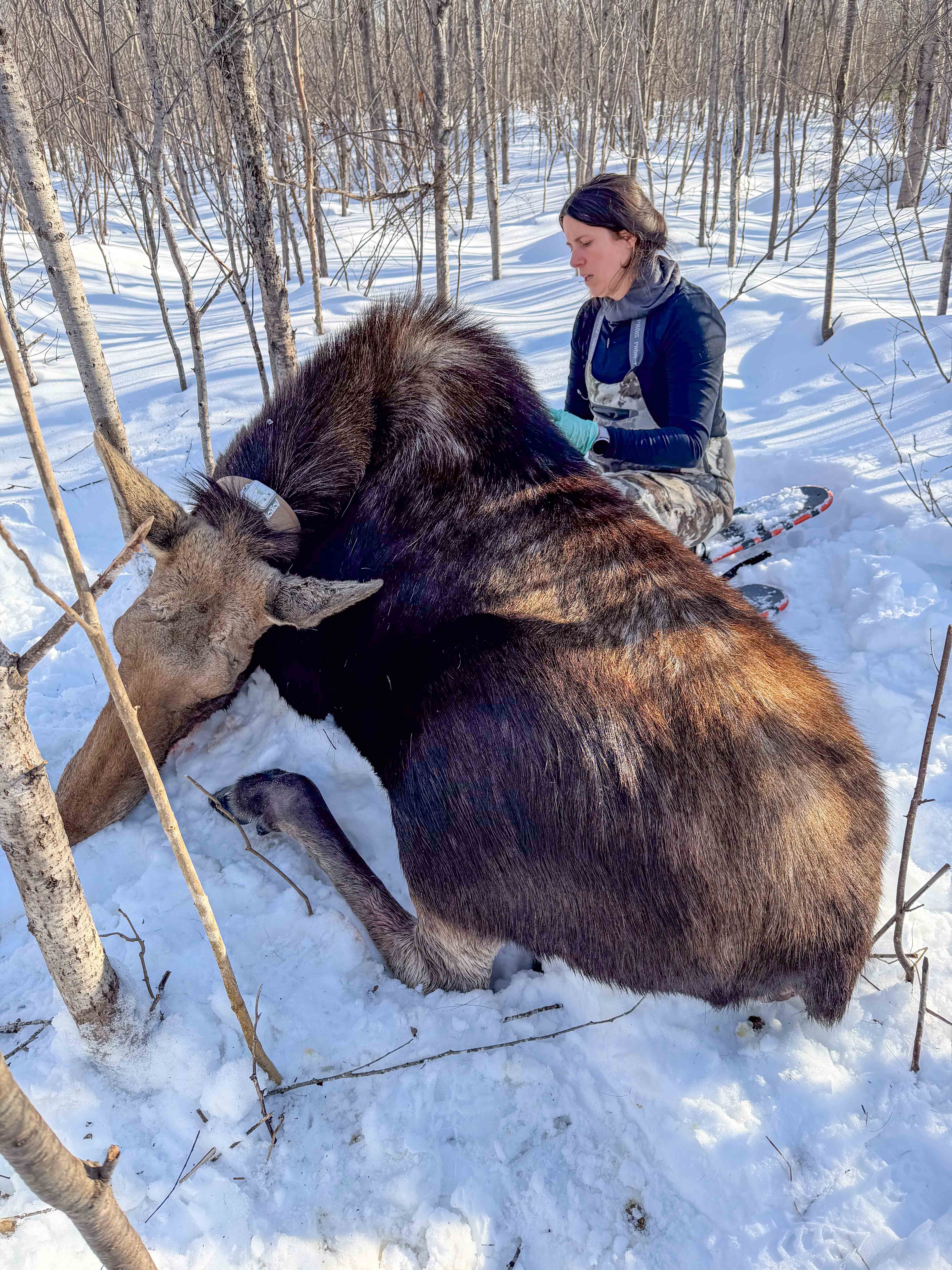 “It will be exciting to see what additional information we can gather now that we have 56 collared moose on the landscape,” said Seppanen, who assisted on seven captures. “Where are the moose going? What habitats are they using and when? As one of two drone operators on the project, I am looking forward to confirming births this spring and tracking calf survival throughout the remainder of the year.”