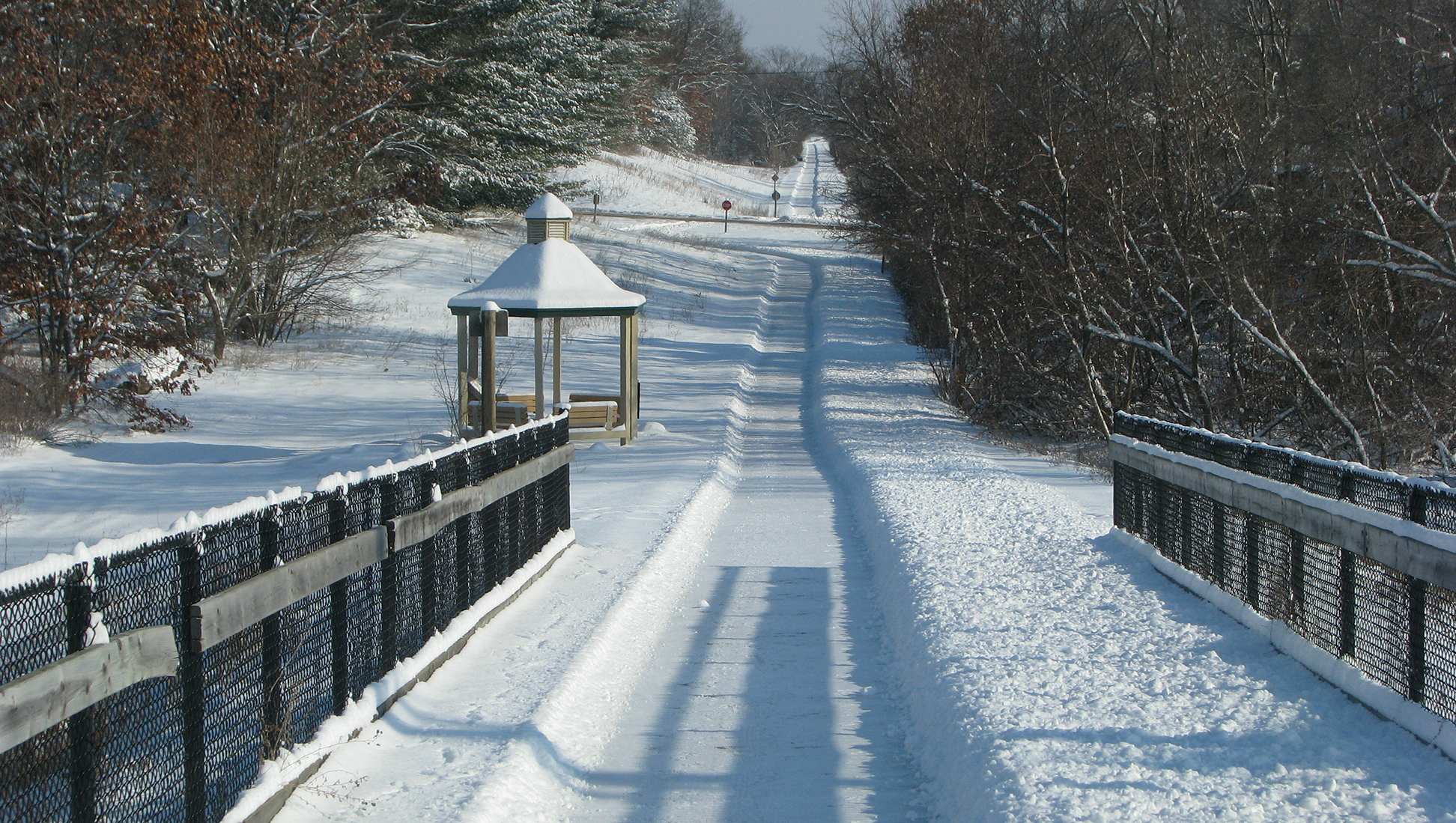 White Pine_bridge: Following the historic Grand Rapids and Indiana Railroad bed, the White Pine Trail traverses 15 towns and cities and rural farmland, and offers scenic overlooks, picnic areas and abundant wildlife viewing opportunities.