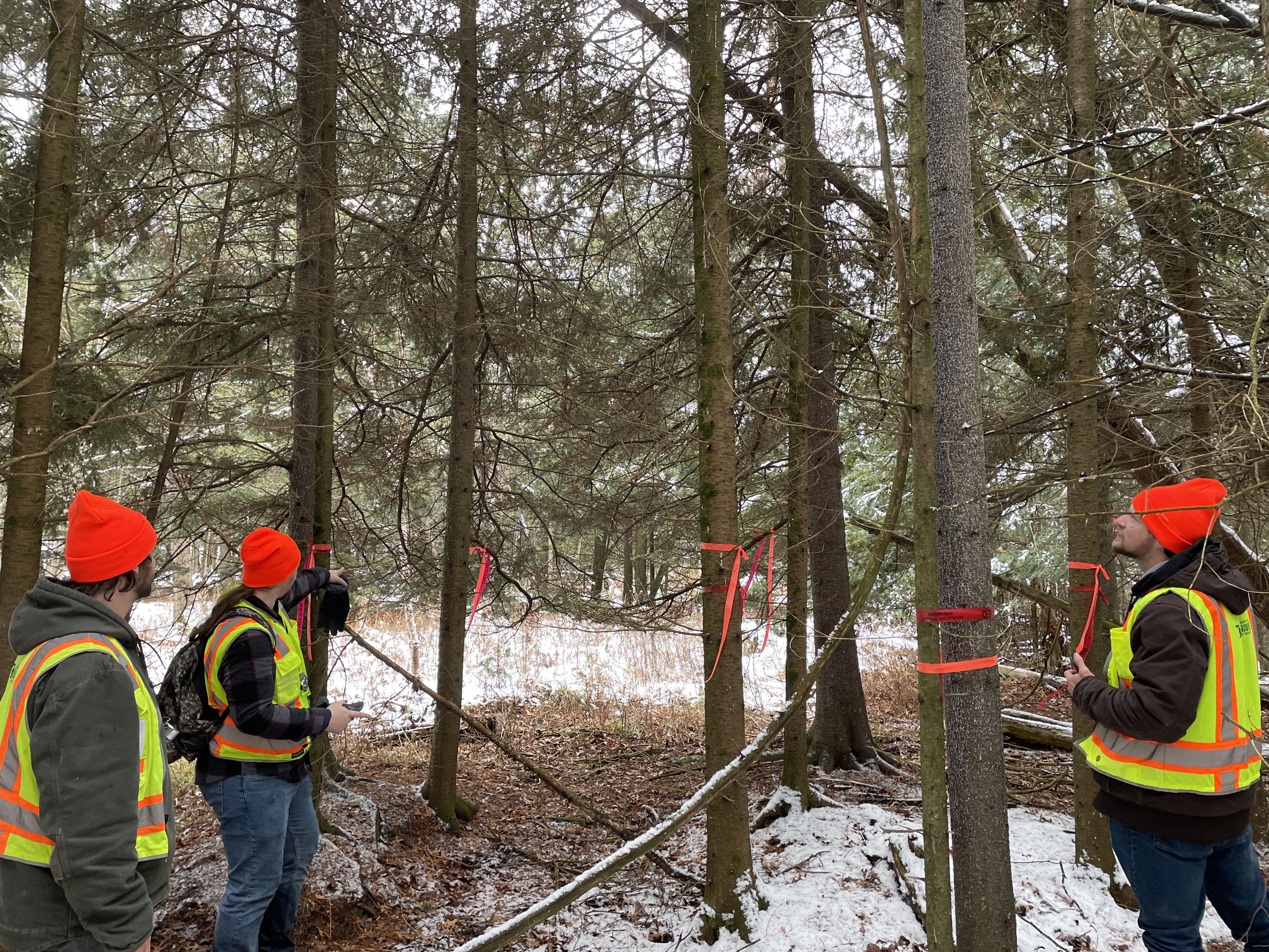 Forestry and Invasive Species Program staff from DNR and MDARD conducted a grid survey of the area surrounding the initial detection and identified several other pockets of balsam fir with light to medium balsam woolly adelgid infestation within the game area.