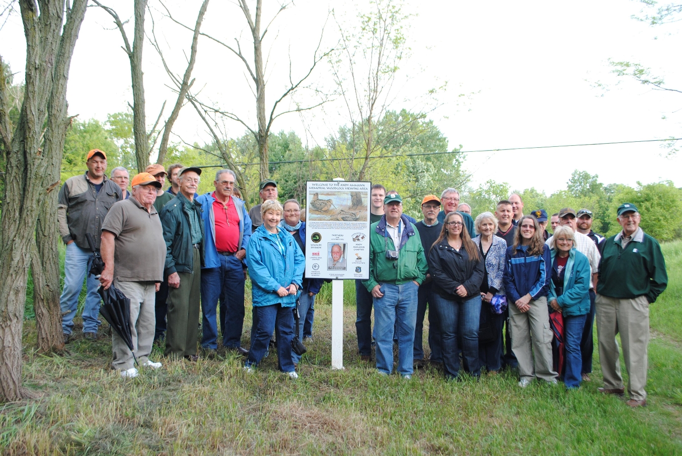 Group - Family, friends and fellow sportsmen gather at the Andy Ammann Memorial Woodcock Viewing Area.